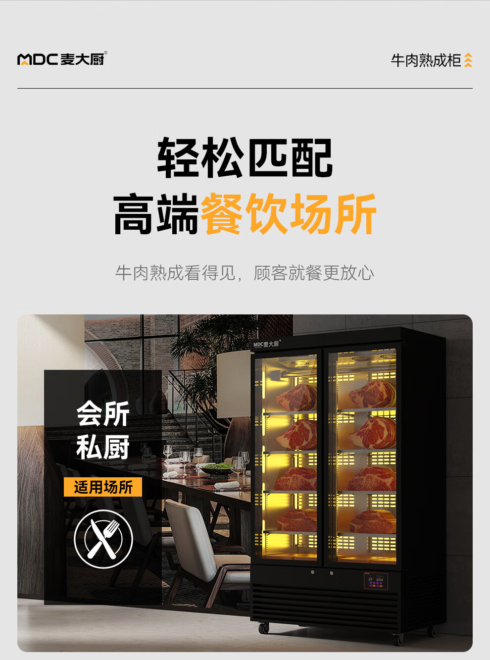 麥大廚豪華款800L雙門冷藏干式熟成柜商用