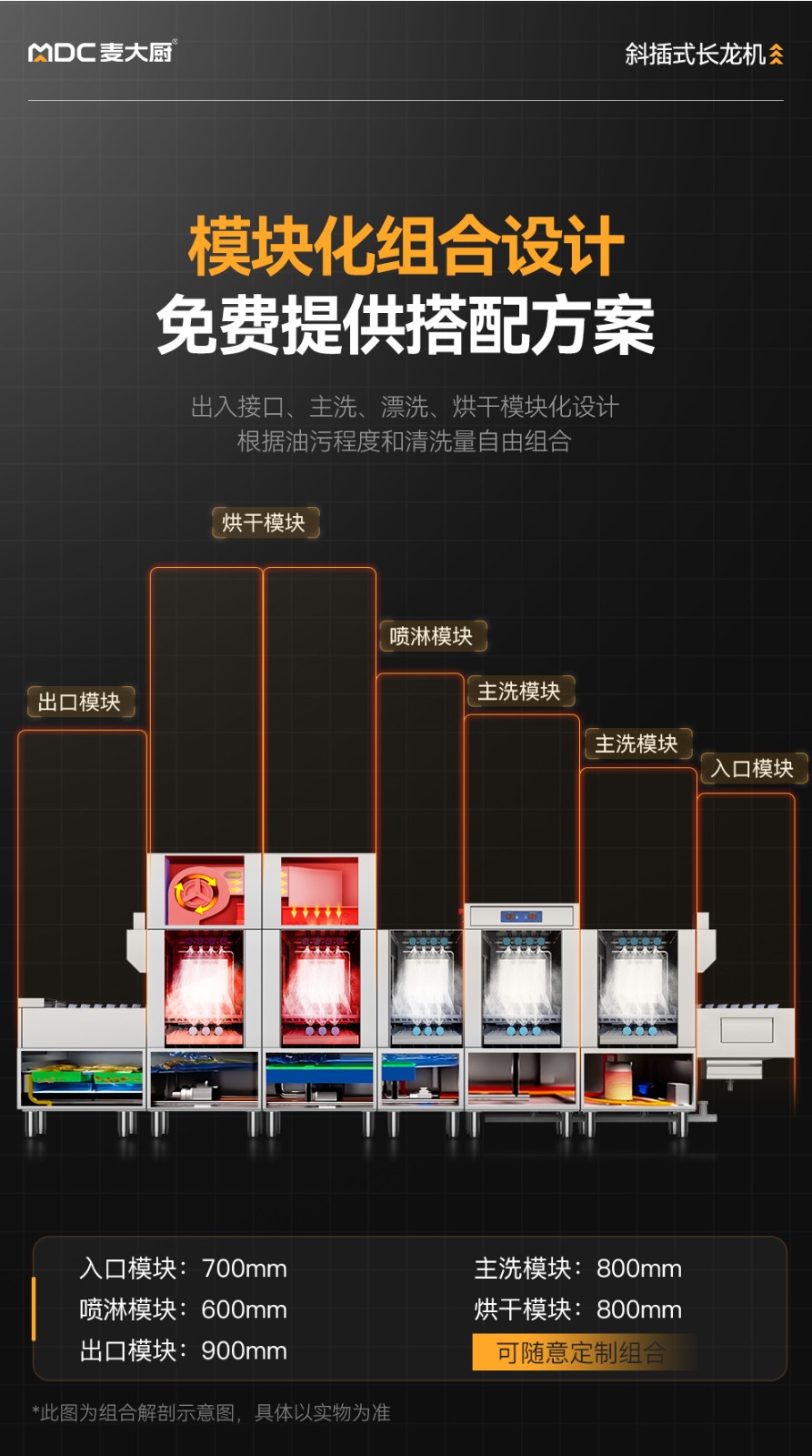 麥大廚豪華款3.8m斜插式單缸雙噴淋單烘洗碗機商用