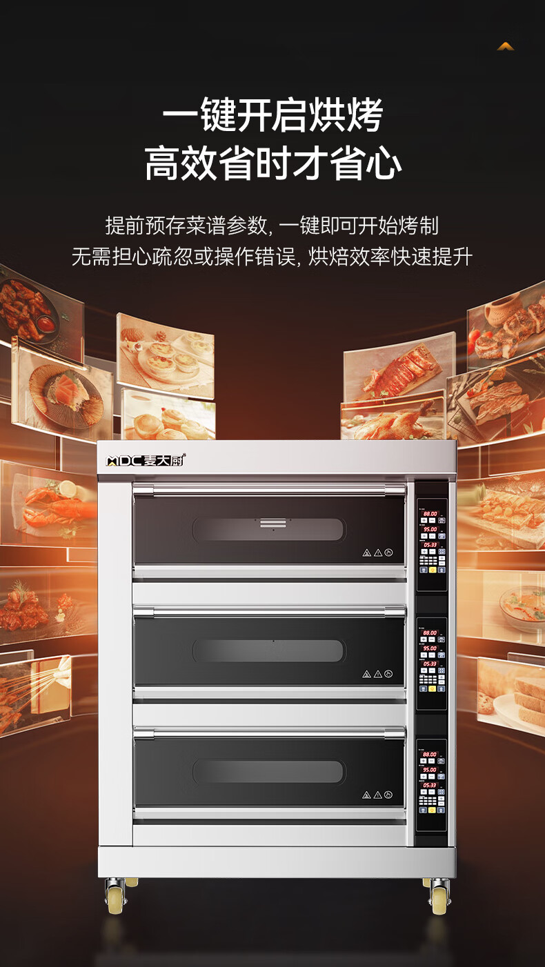 首頁(yè) > 商廚產(chǎn)品 > 蒸烤箱 > 烘焙烤箱 >麥大廚升級(jí)款三層六盤(pán)全機(jī)201智能控溫19.8KW
