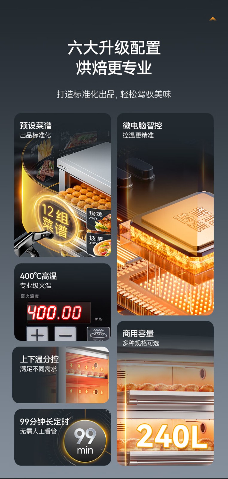 麥大廚豪華款兩層四盤智能控溫上下獨立烤箱13.2KW
