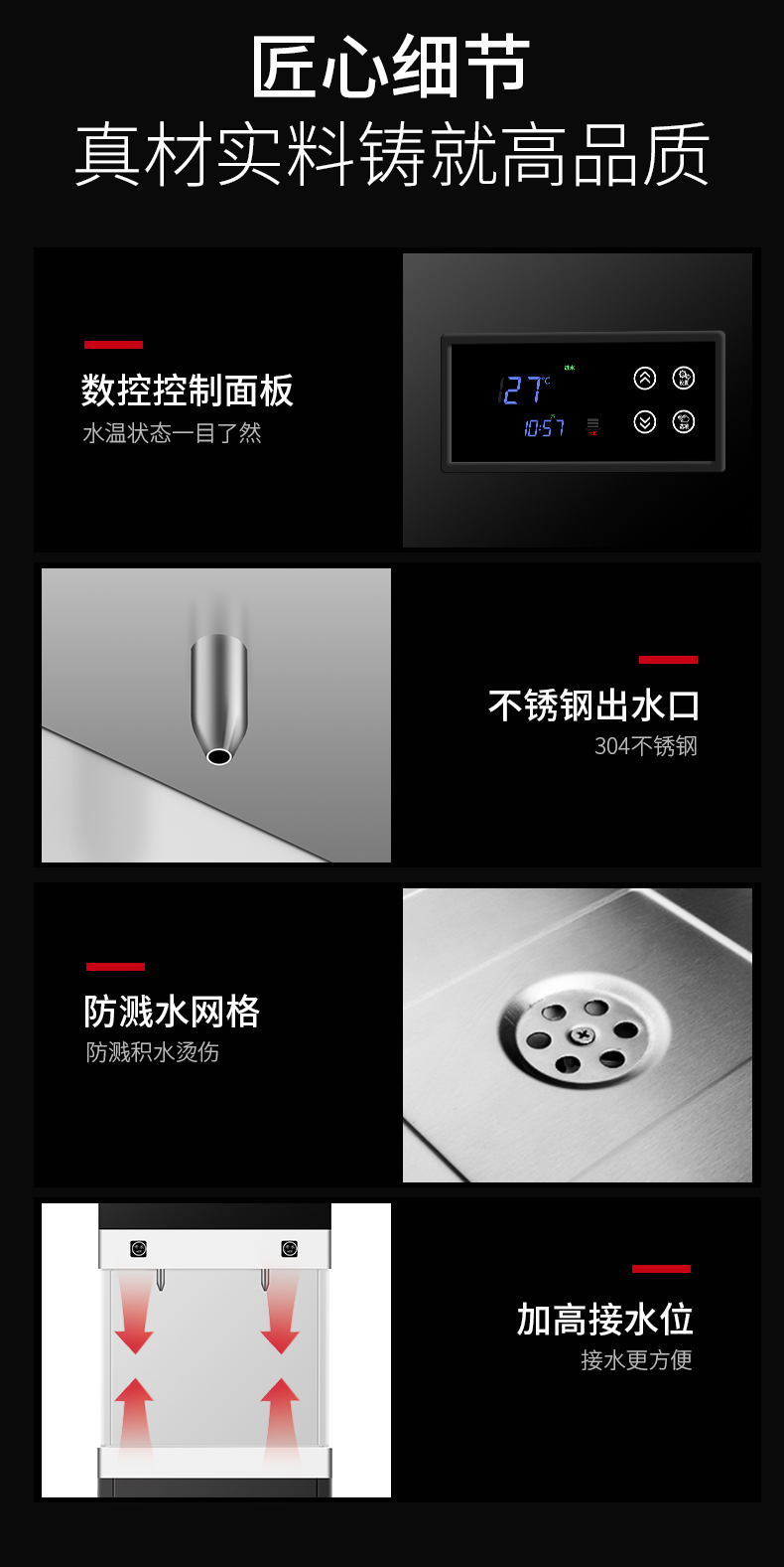 麥大廚步進式柜式三級過濾二開50L商用開水機
