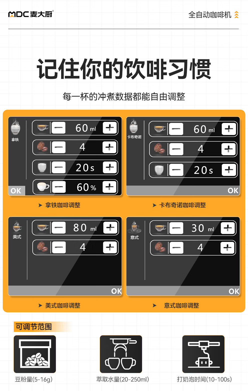 • 更多MDC全自動(dòng)咖啡機(jī)規(guī)格咨詢?cè)诰€客服