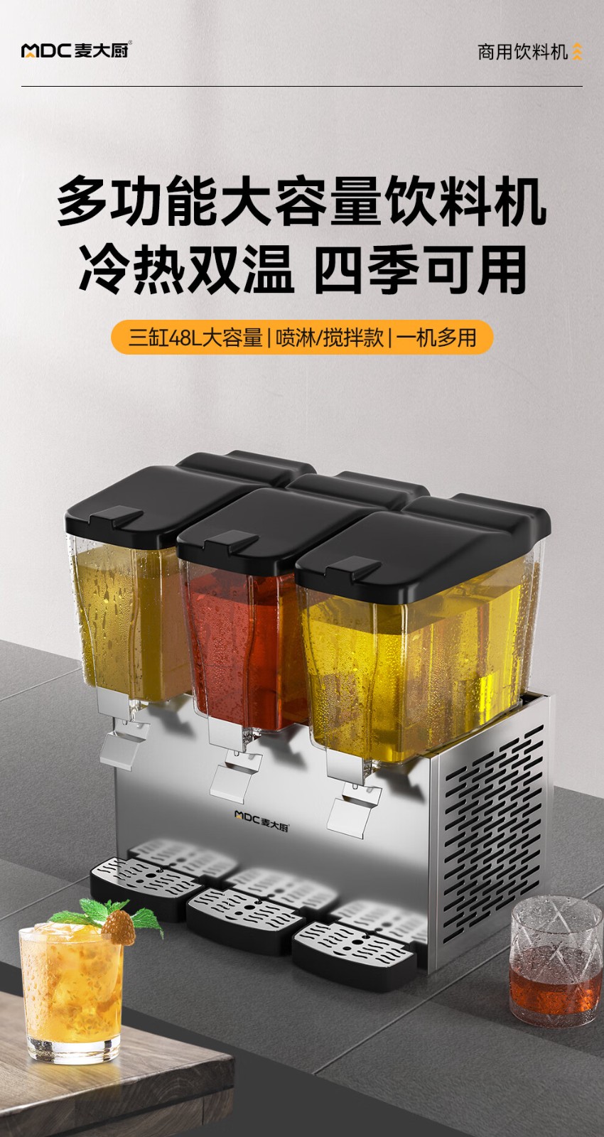 麥大廚220V標準款三缸冷熱攪拌式飲料機商用450W