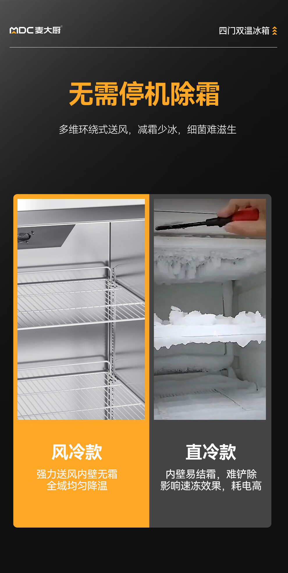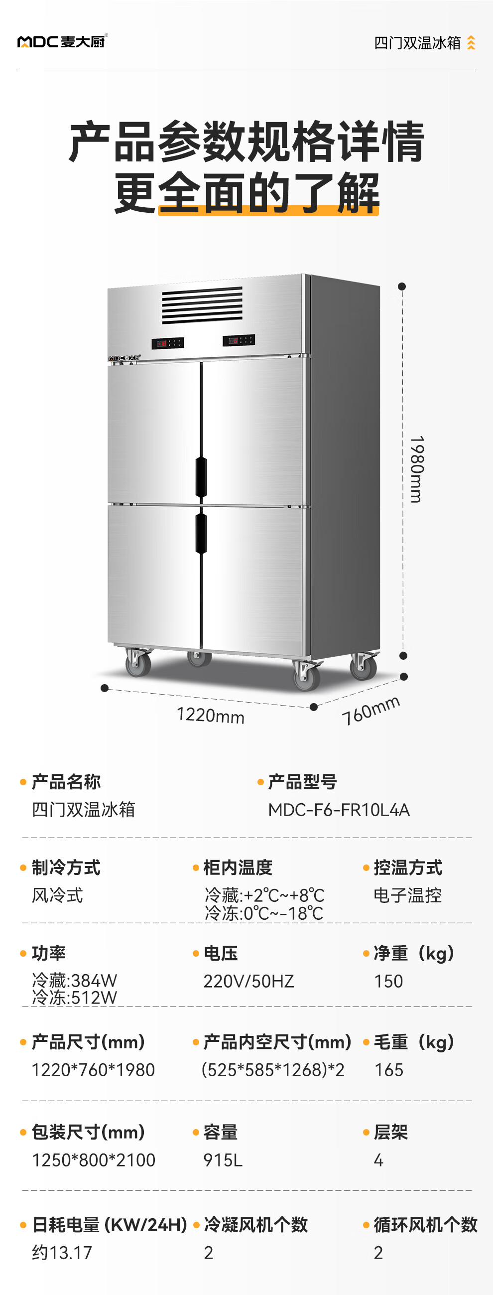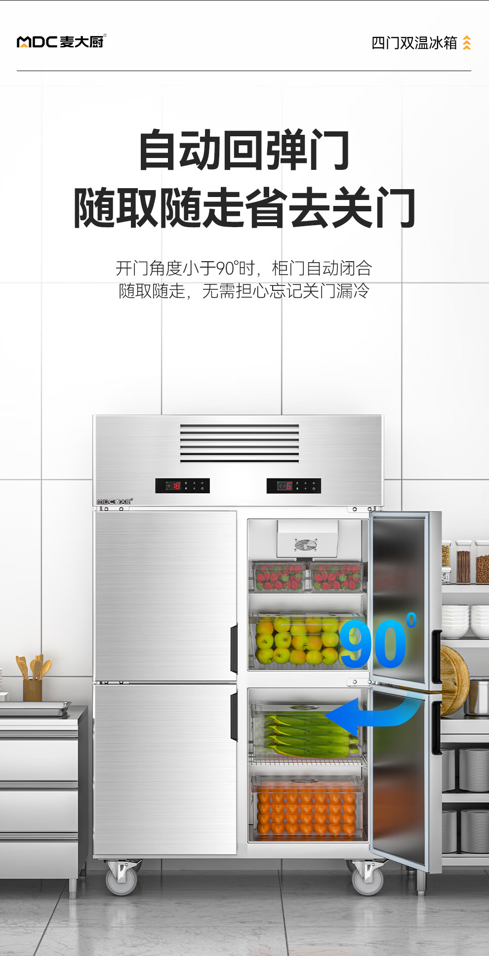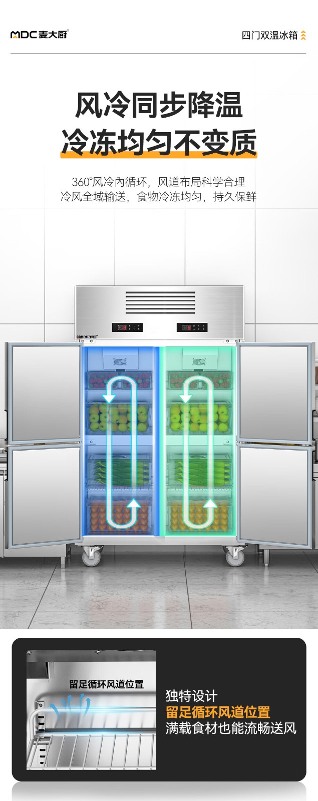 麥大廚經濟款四門風冷立式雙溫柜896W