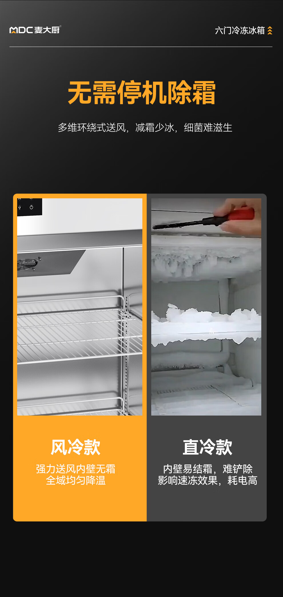 麥大廚經濟款六門風冷立式冷凍柜1146W
