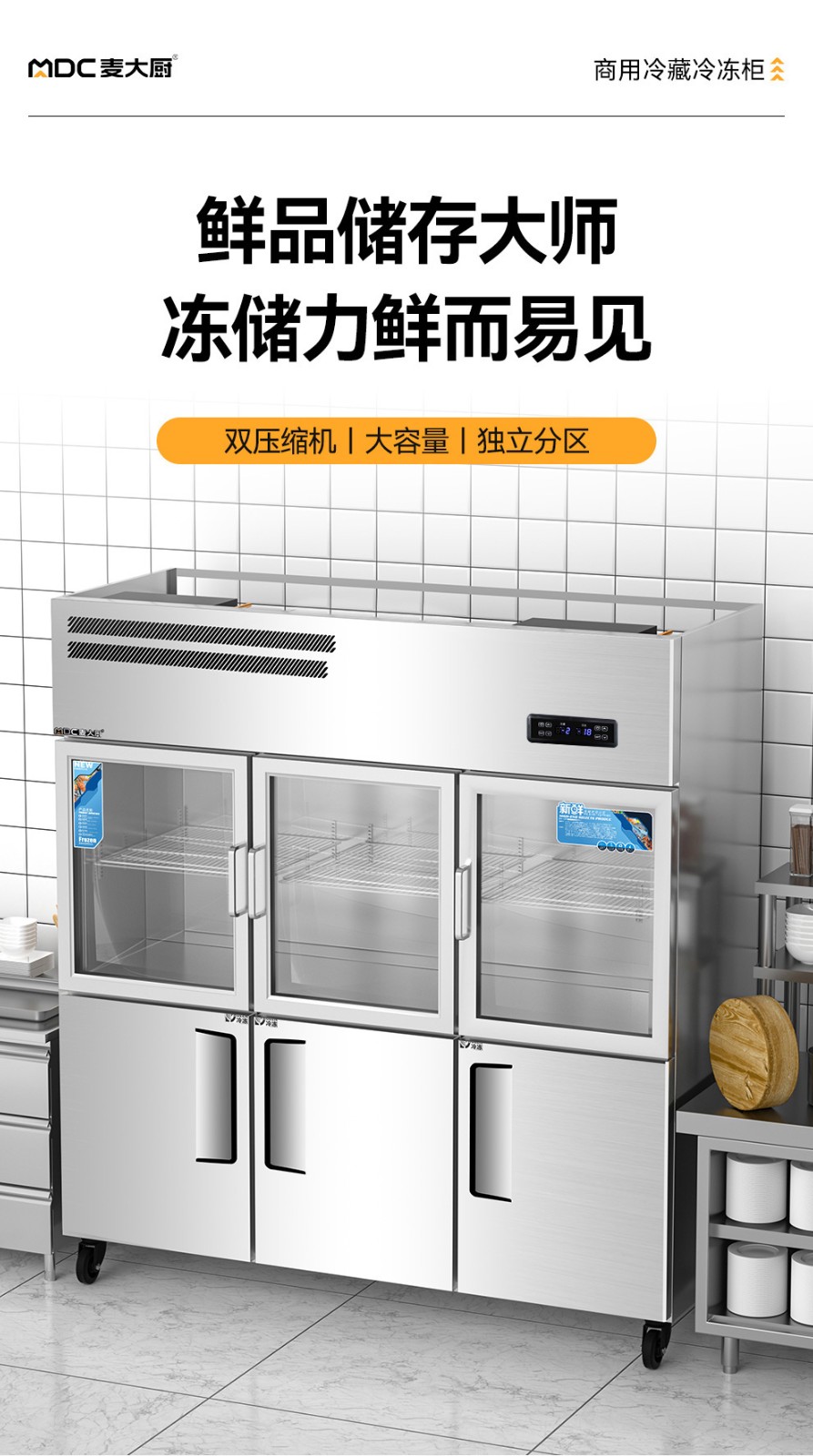 麥大廚標準款六門直冷上玻璃立式雙溫冰柜