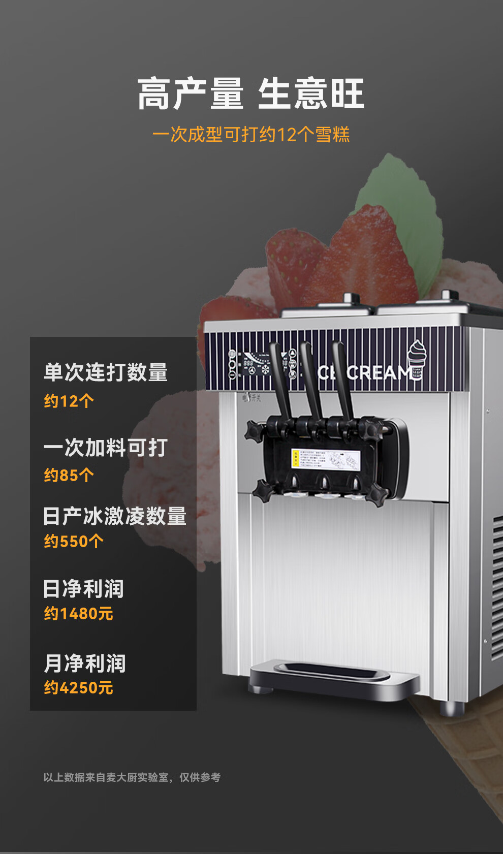 麥大廚經濟款三頭臺式冰淇淋機2.0KW