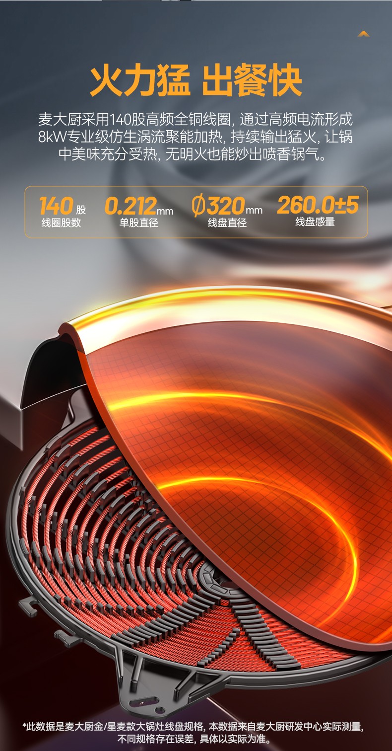 麥大廚金麥款201材質電磁單頭單尾小炒爐8kw