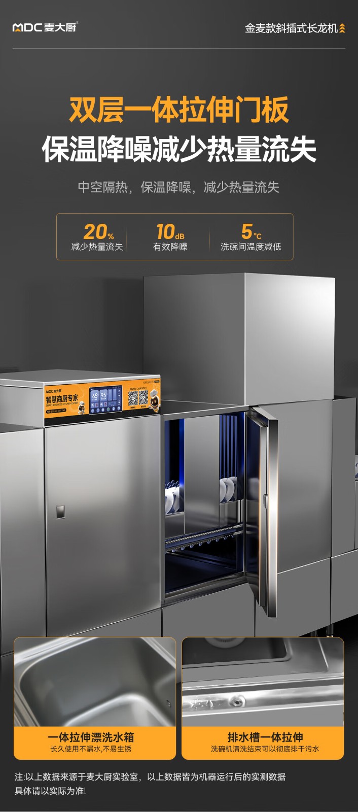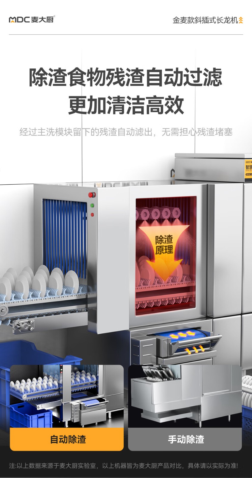 麥大廚金麥款斜插式觸屏熱回收5.45m三缸雙噴單烘帶除渣洗碗機