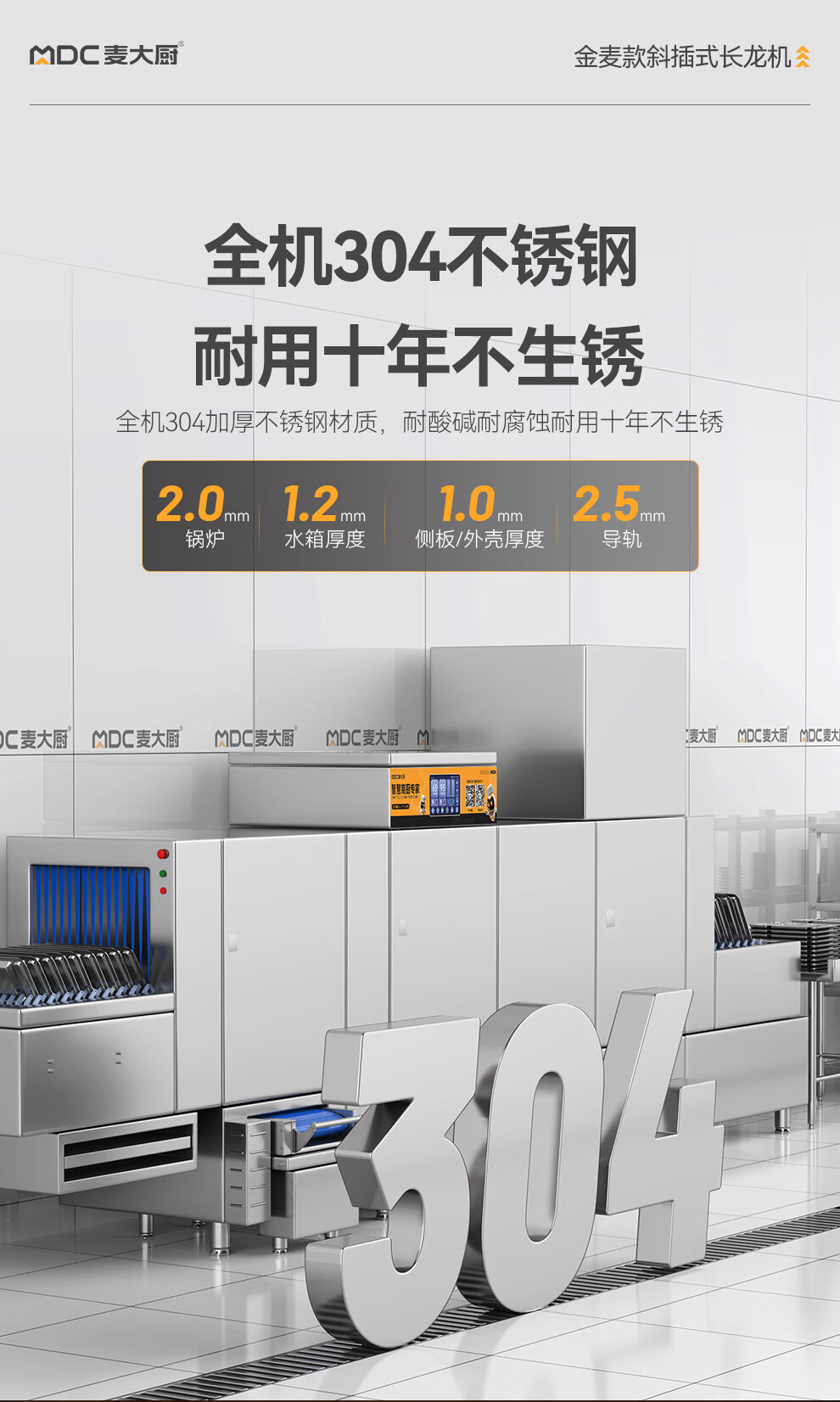 麥大廚金麥款斜插式觸屏熱回收5.85m三缸雙噴雙烘洗碗機