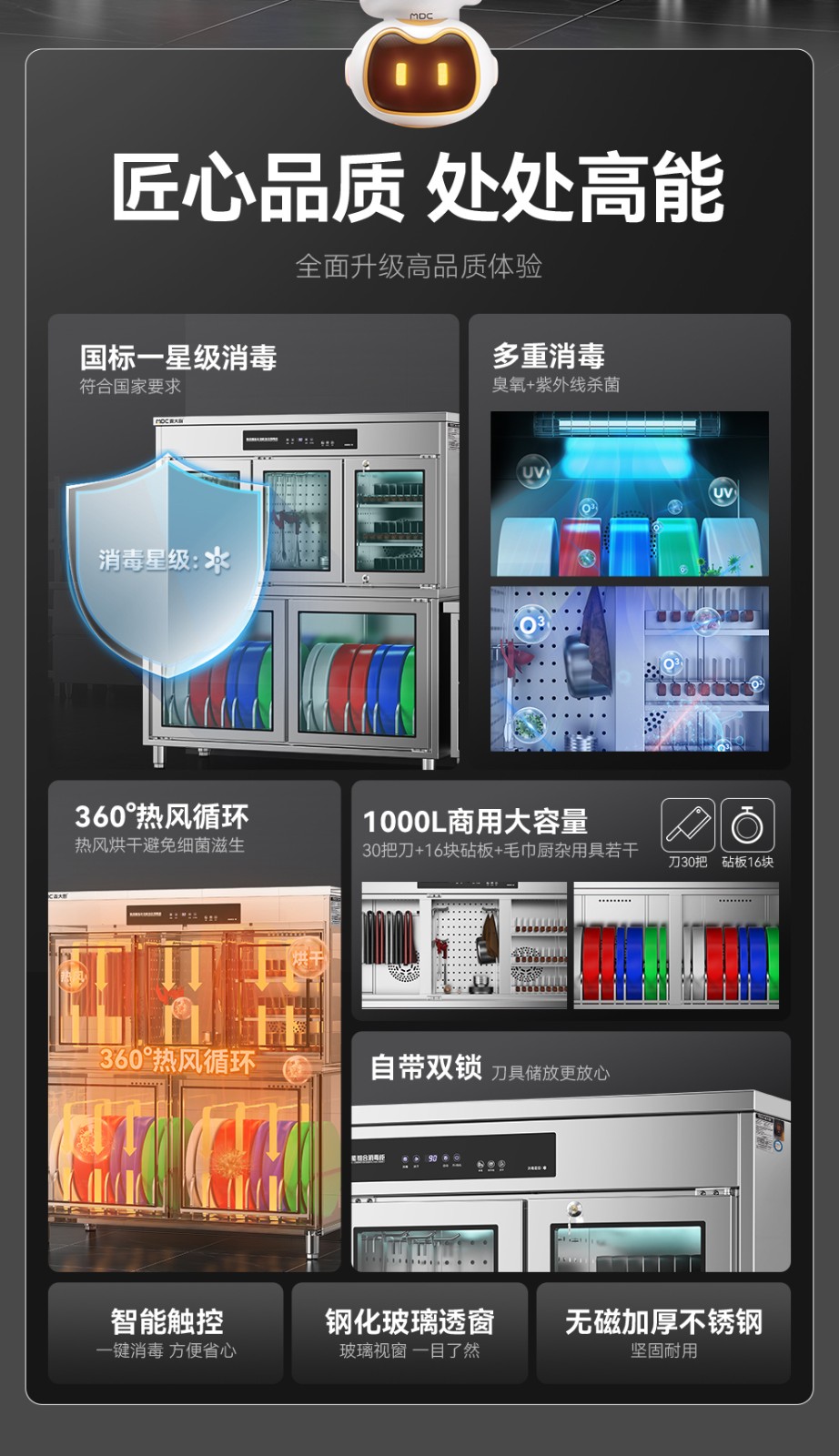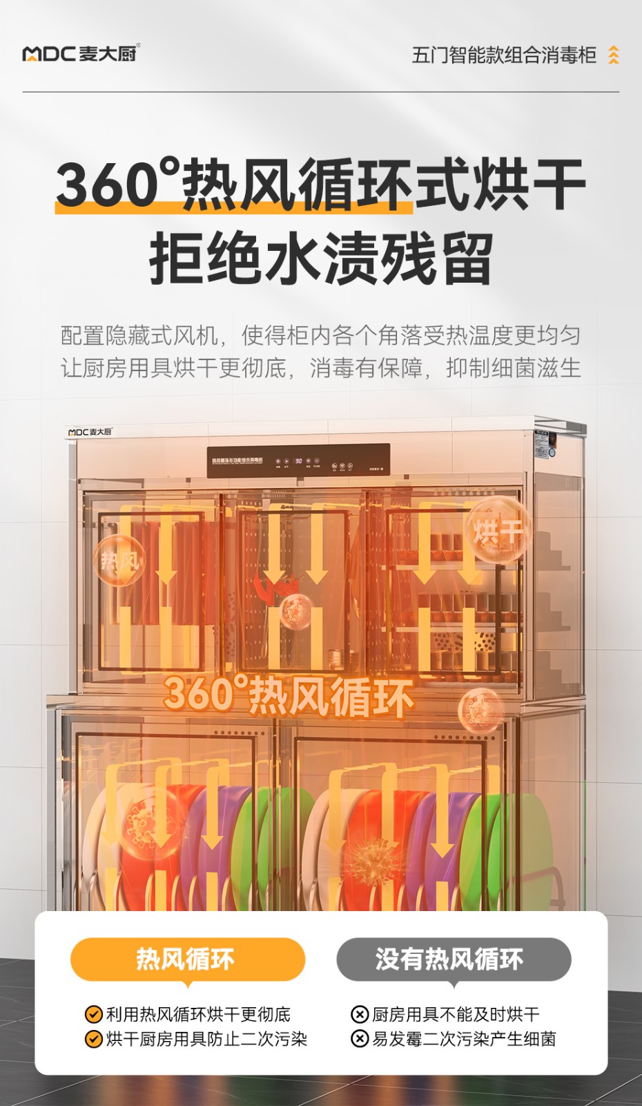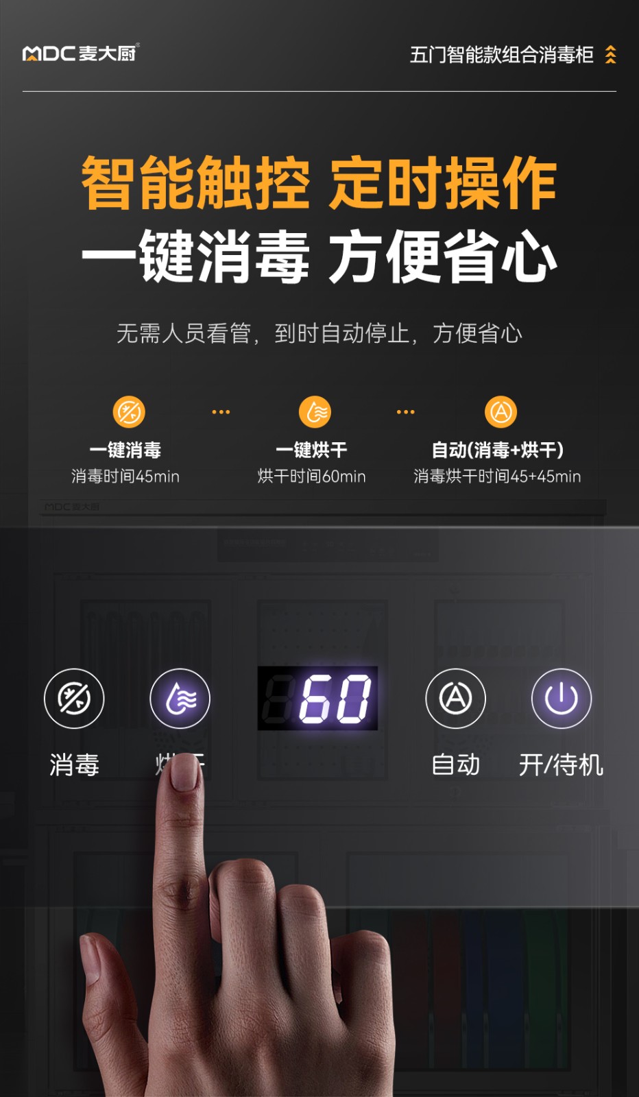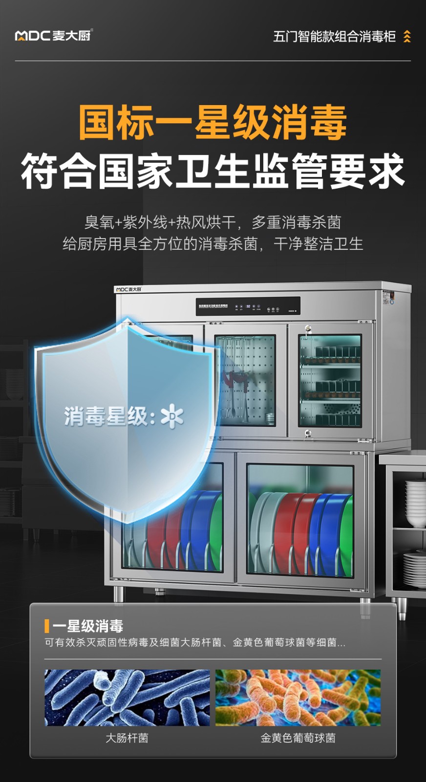 麥大廚智能款五門廚房用具組合臭氧紫外線熱風(fēng)循環(huán)消毒柜