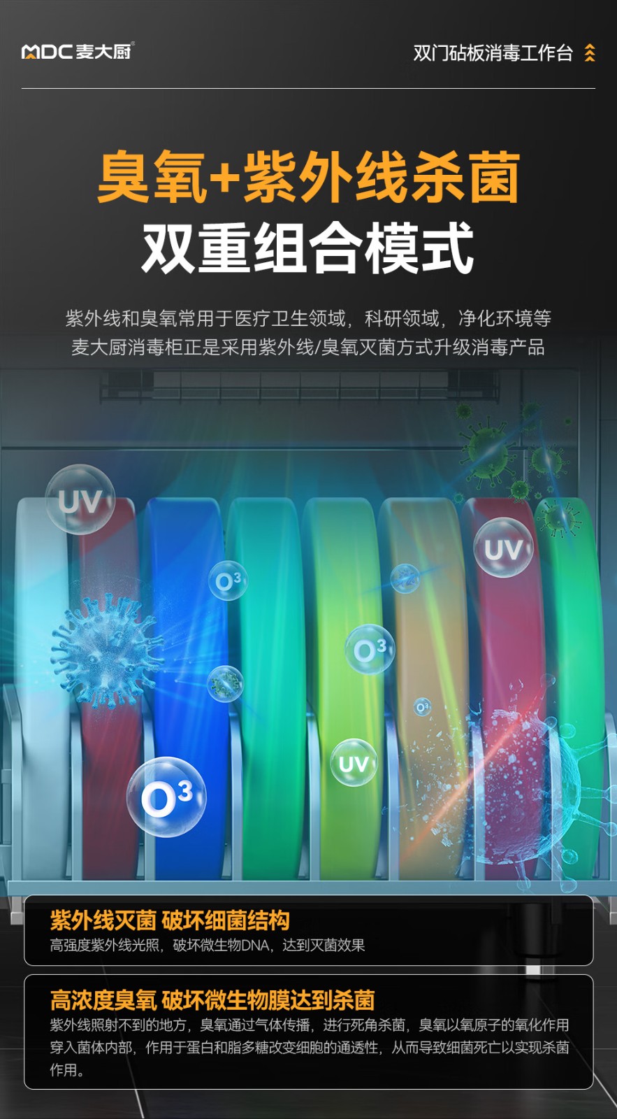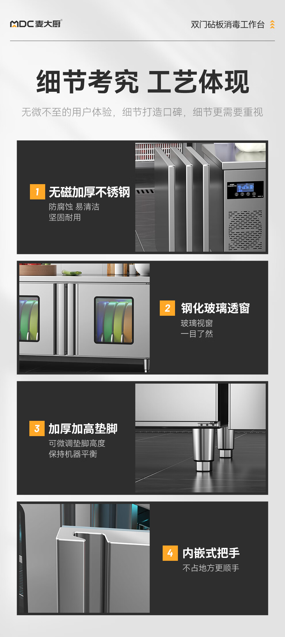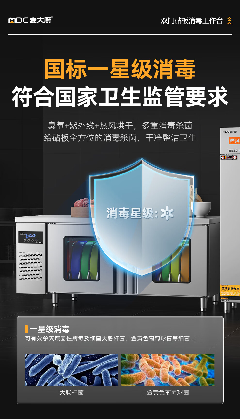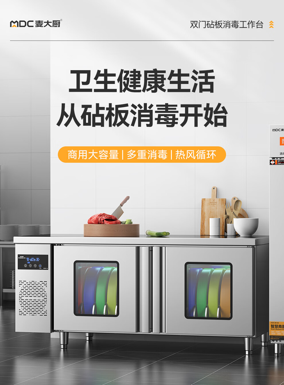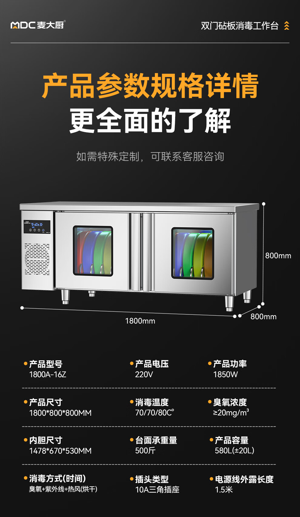 麥大廚1.8m雙門砧板組合臭氧紫外線熱風循環(huán)消毒工作臺
