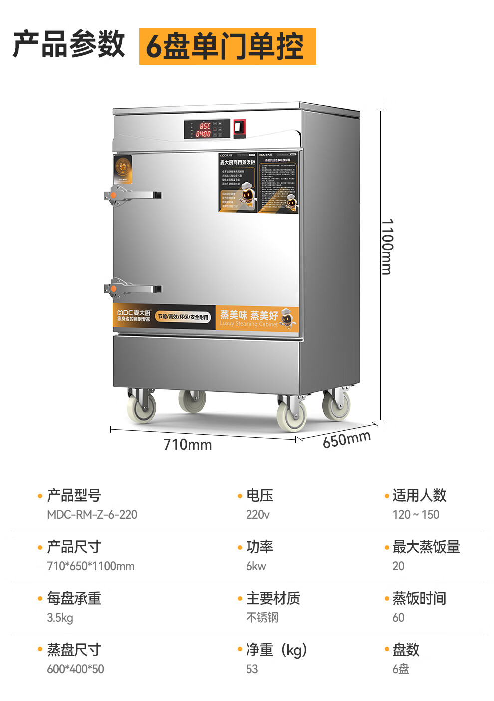 麥大廚金麥款220V電熱智能型6盤單門單控蒸柜 麥大廚金麥款220V電熱智能型6盤單門單控蒸柜 麥大廚金麥款220V電熱智能型6盤單門單控蒸柜 麥大廚金麥款220V電熱智能型6盤單門單控蒸柜