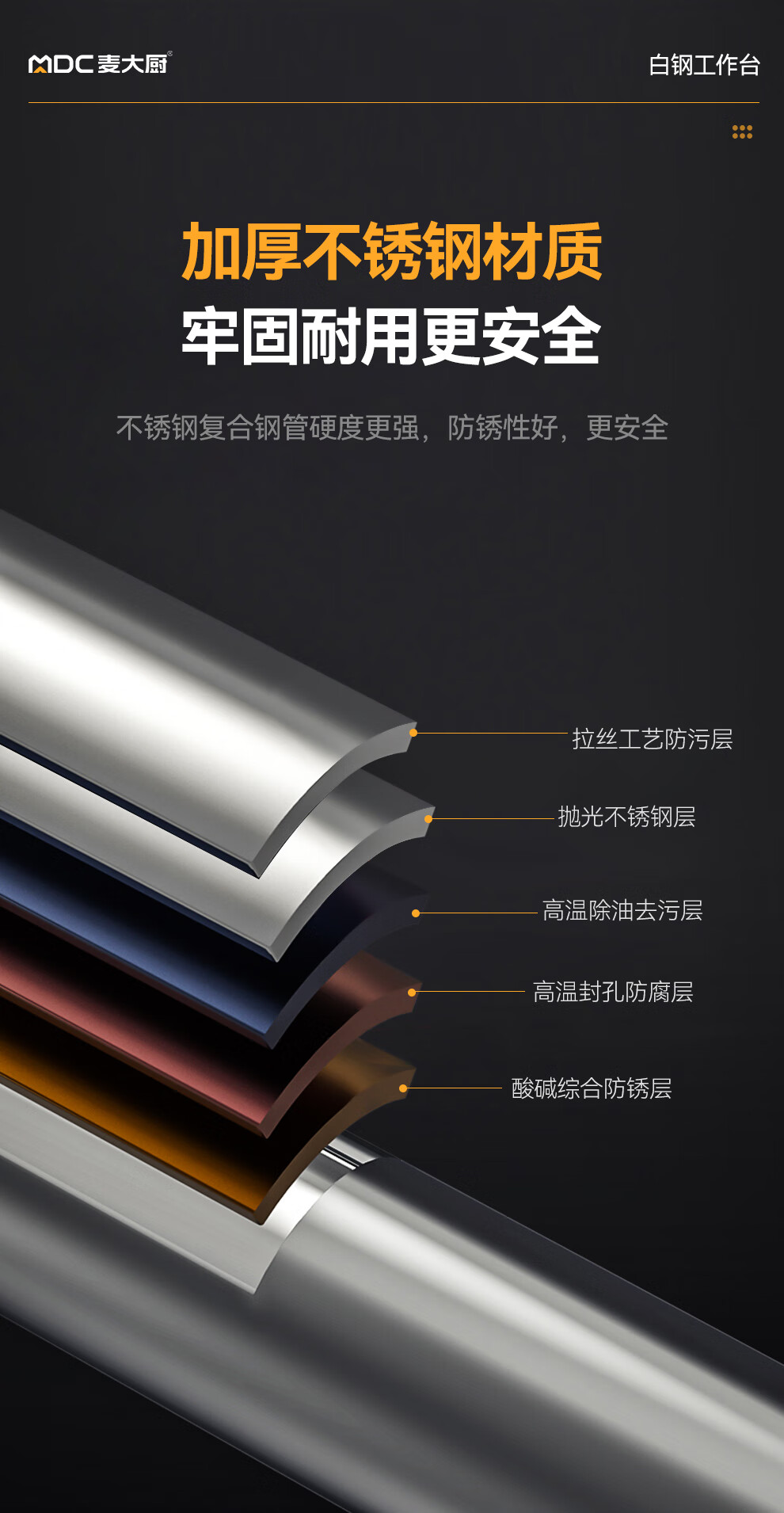 麥大廚0.8m升級款不銹鋼工作臺單通工作臺帶靠背