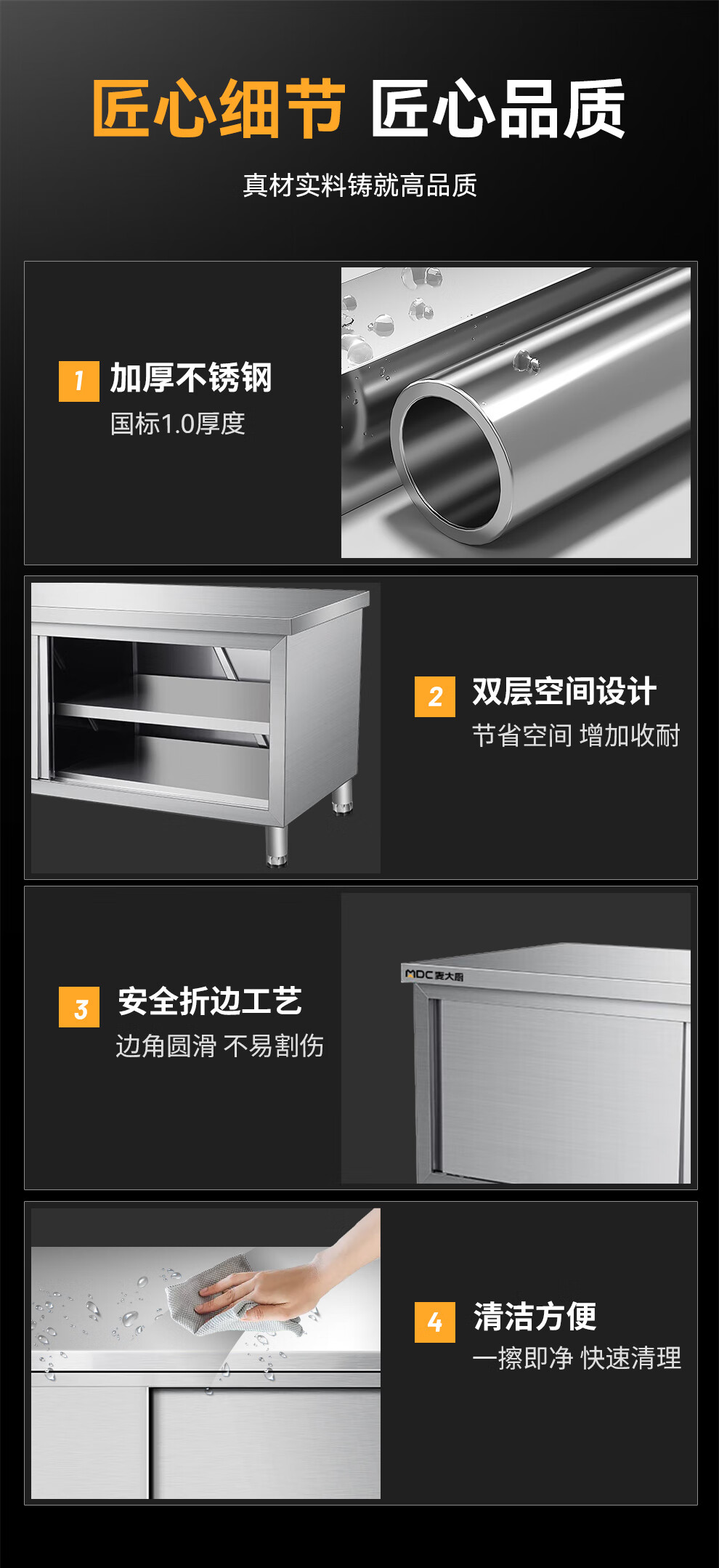麥大廚2.0m升級款不銹鋼工作臺單通工作臺帶靠背