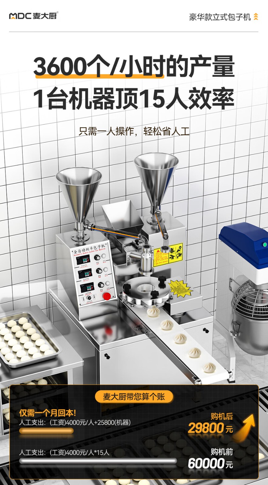 麥大廚多功能豪華款立式雙斗數控包子機2.0kw