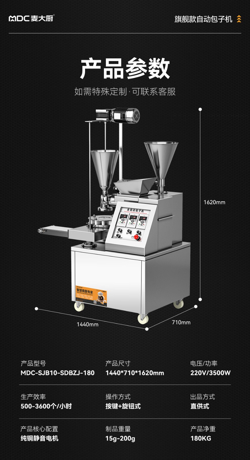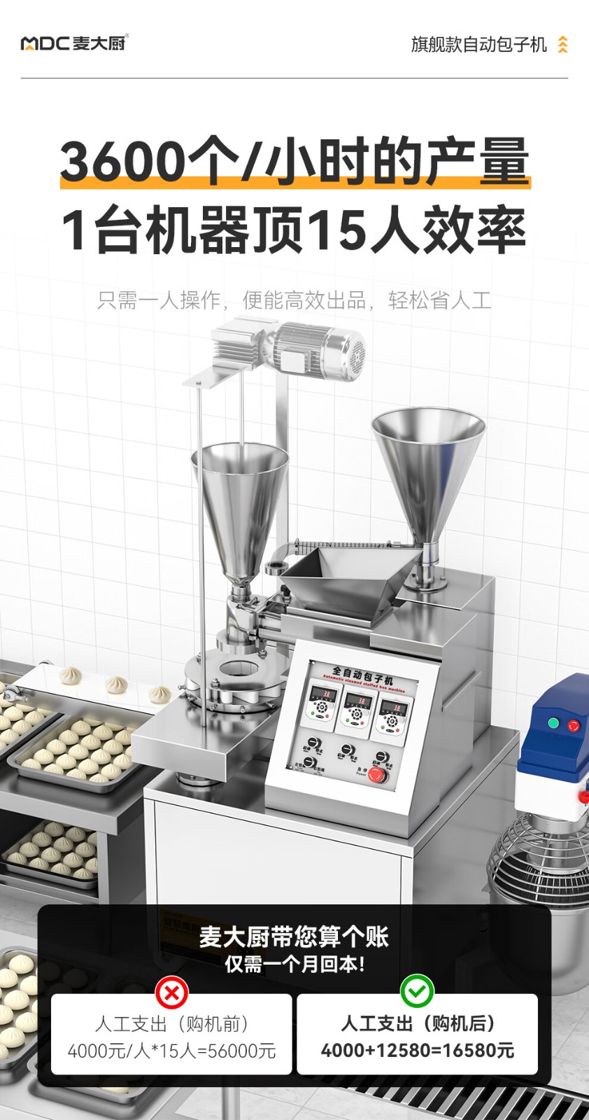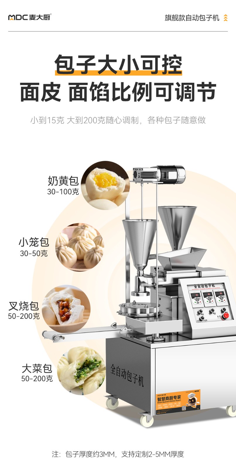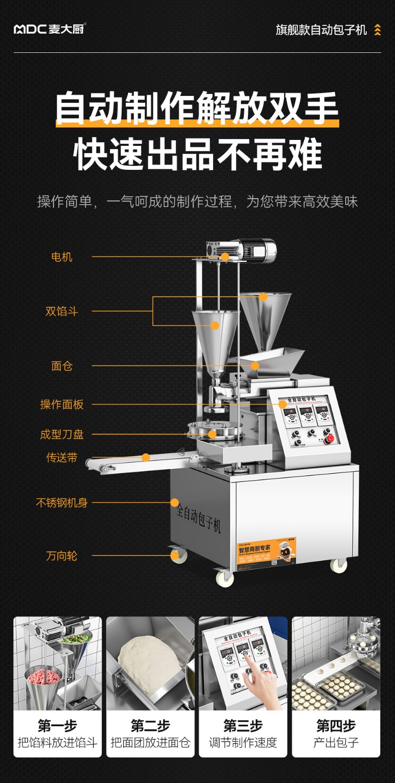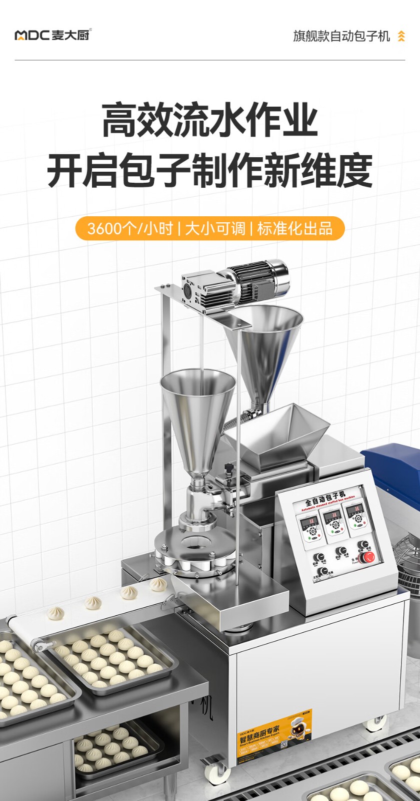 麥大廚多功能旗艦款立式雙斗直供數控包子機3.5kw