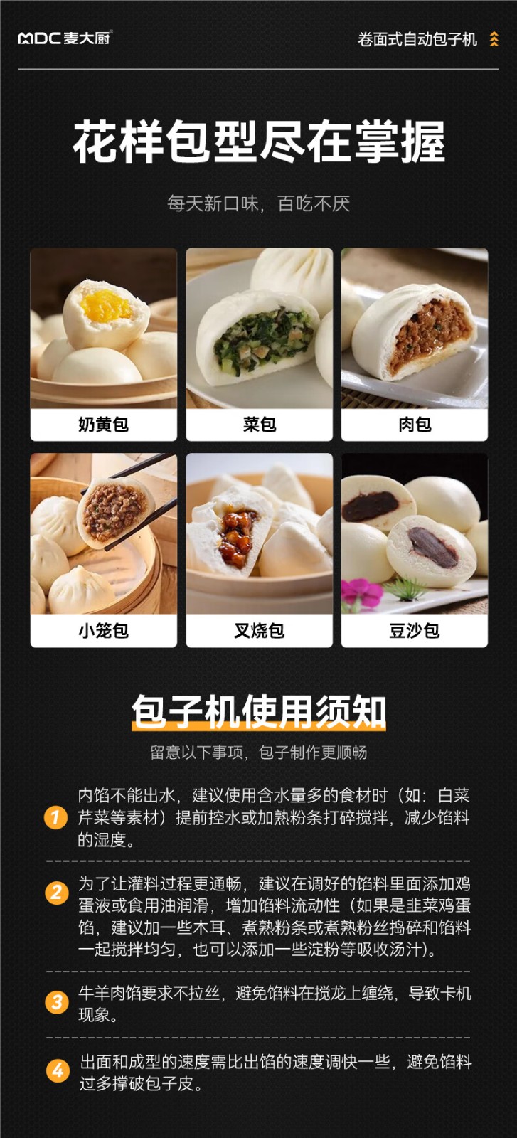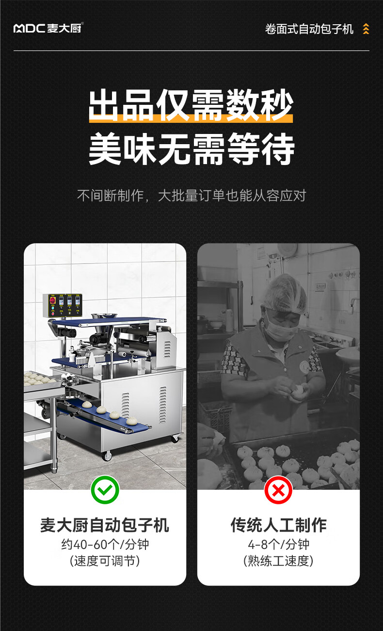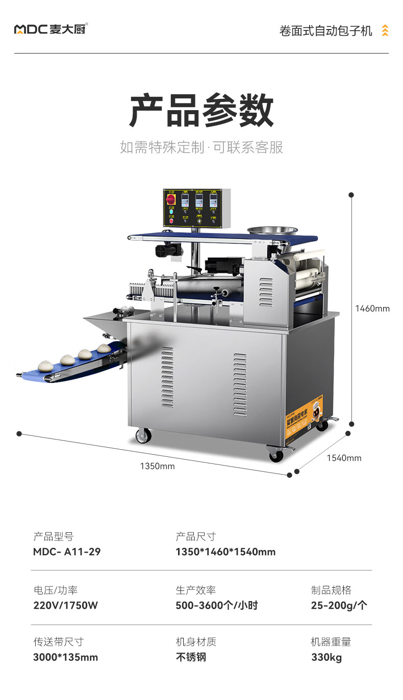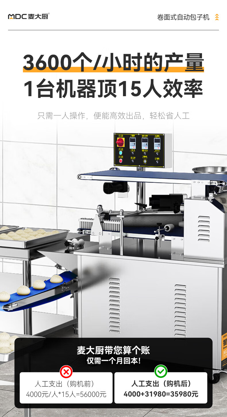 麥大廚豪華款卷面式單斗全自動數控包子機1.75kw