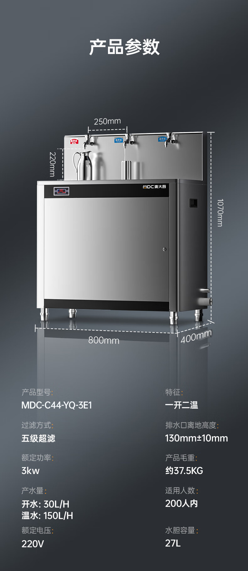溫開水產水量:150L/h - 更多MDC商用直飲機規格咨詢在線客服