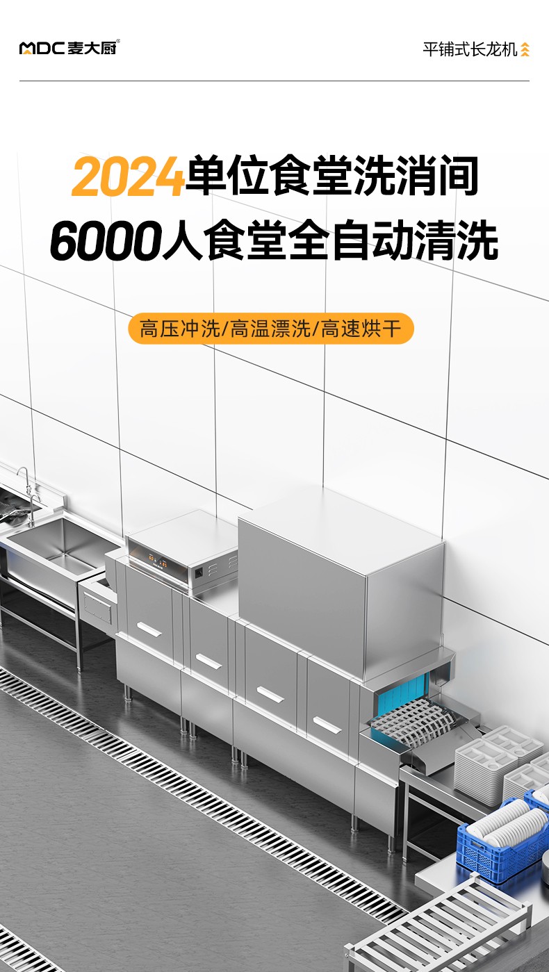 麥大廚3.6m豪華款平放式單缸雙噴淋單烘干單位食堂洗碗機