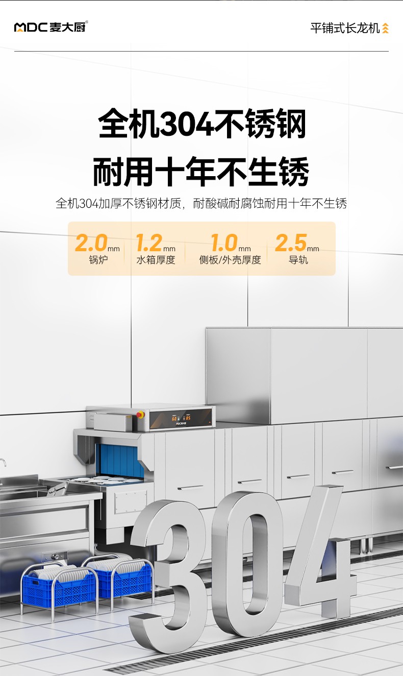 麥大廚4.9m豪華款平放式單缸雙噴淋雙烘干商用大型洗碗機