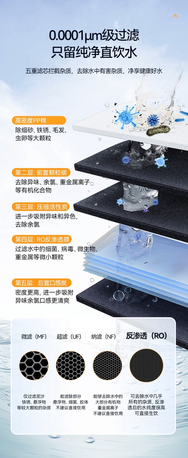 核心配置:五級(jí)RO400G+3.2G壓力桶