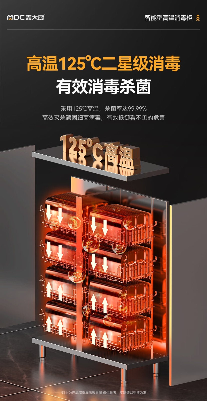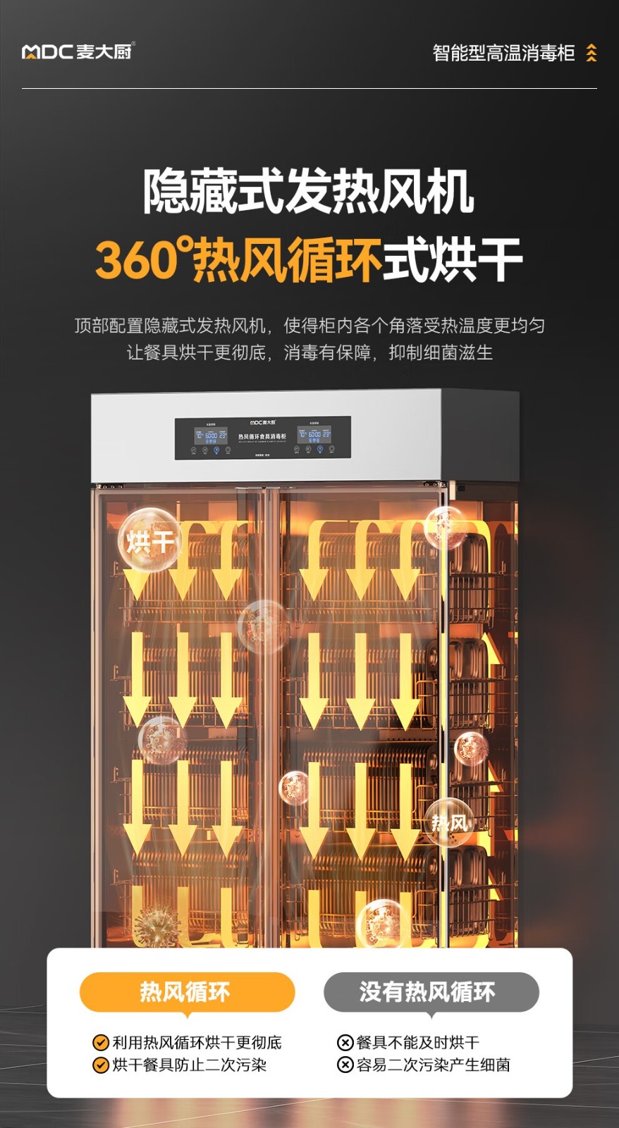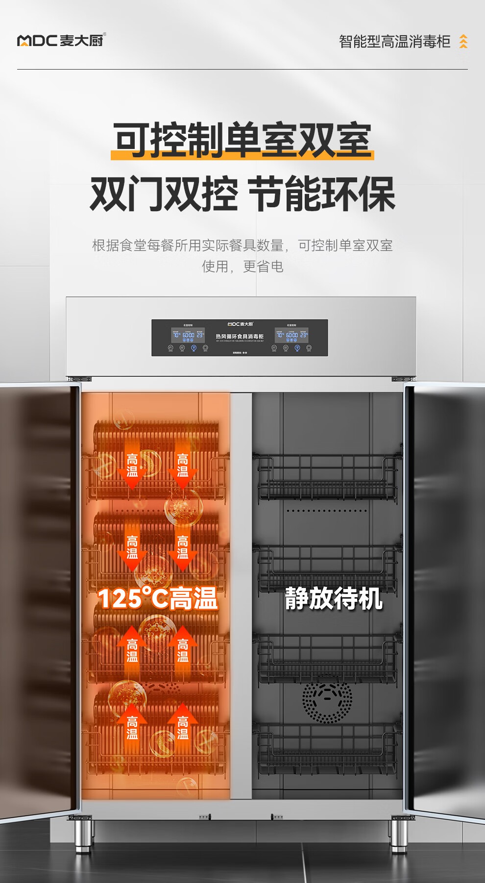 麥大廚智能電腦型雙門雙控4層熱風(fēng)循環(huán)高溫消毒柜1870W