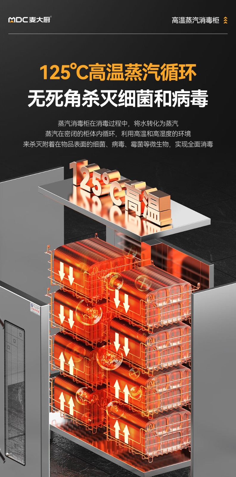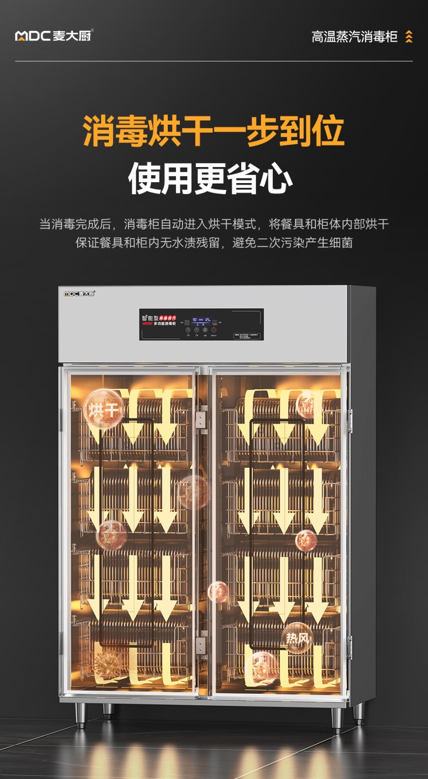 麥大廚智能電腦型雙門單控4層熱風循環高溫蒸汽消毒柜7KW