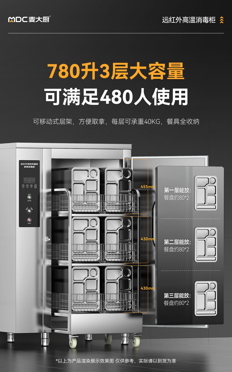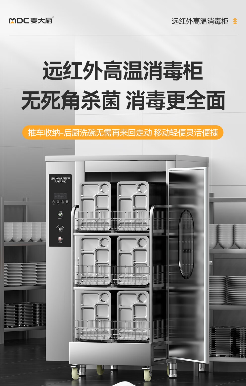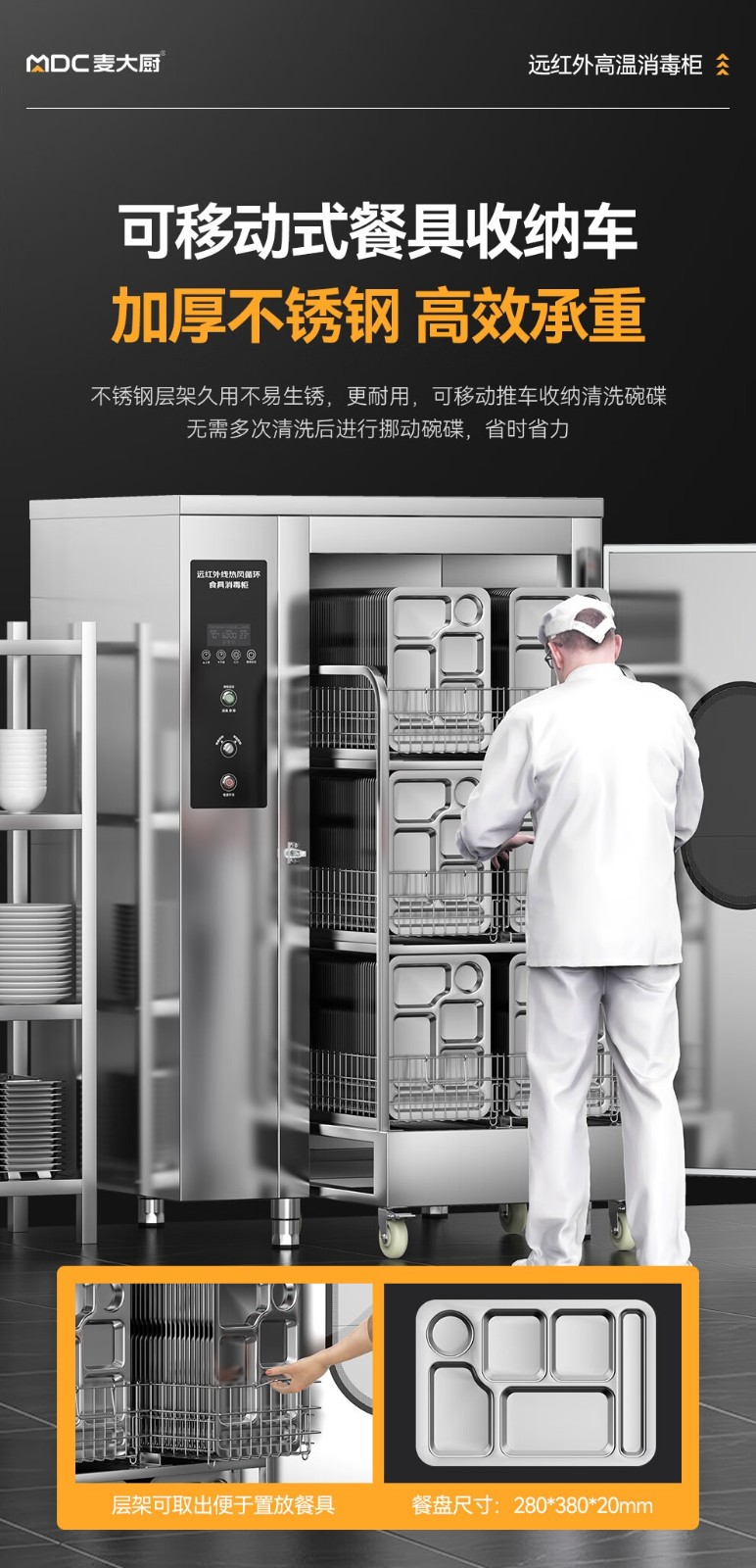 麥大廚380V工程款單門單控3層推車式遠紅外線熱風循環高溫消毒柜4.5KW