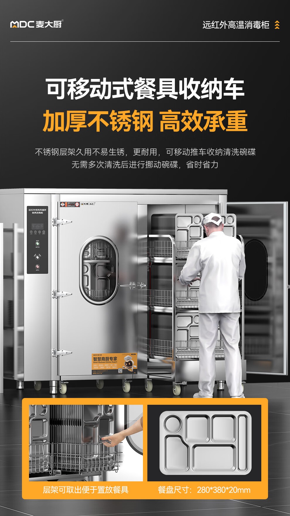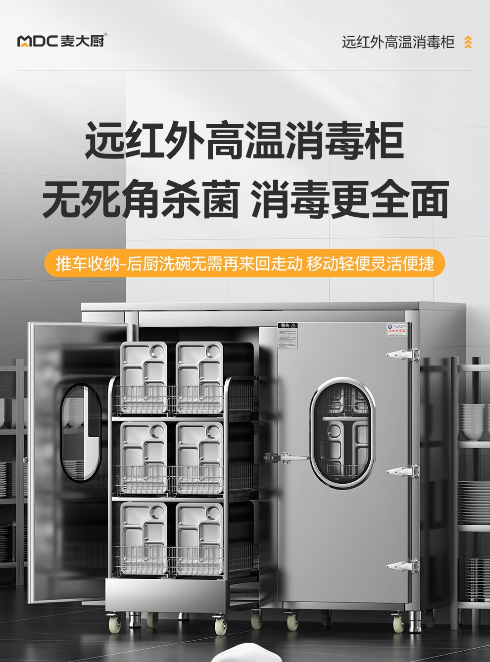 麥大廚380V工程款雙門單控3層推車式遠紅外線熱風循環高溫消毒柜7KW