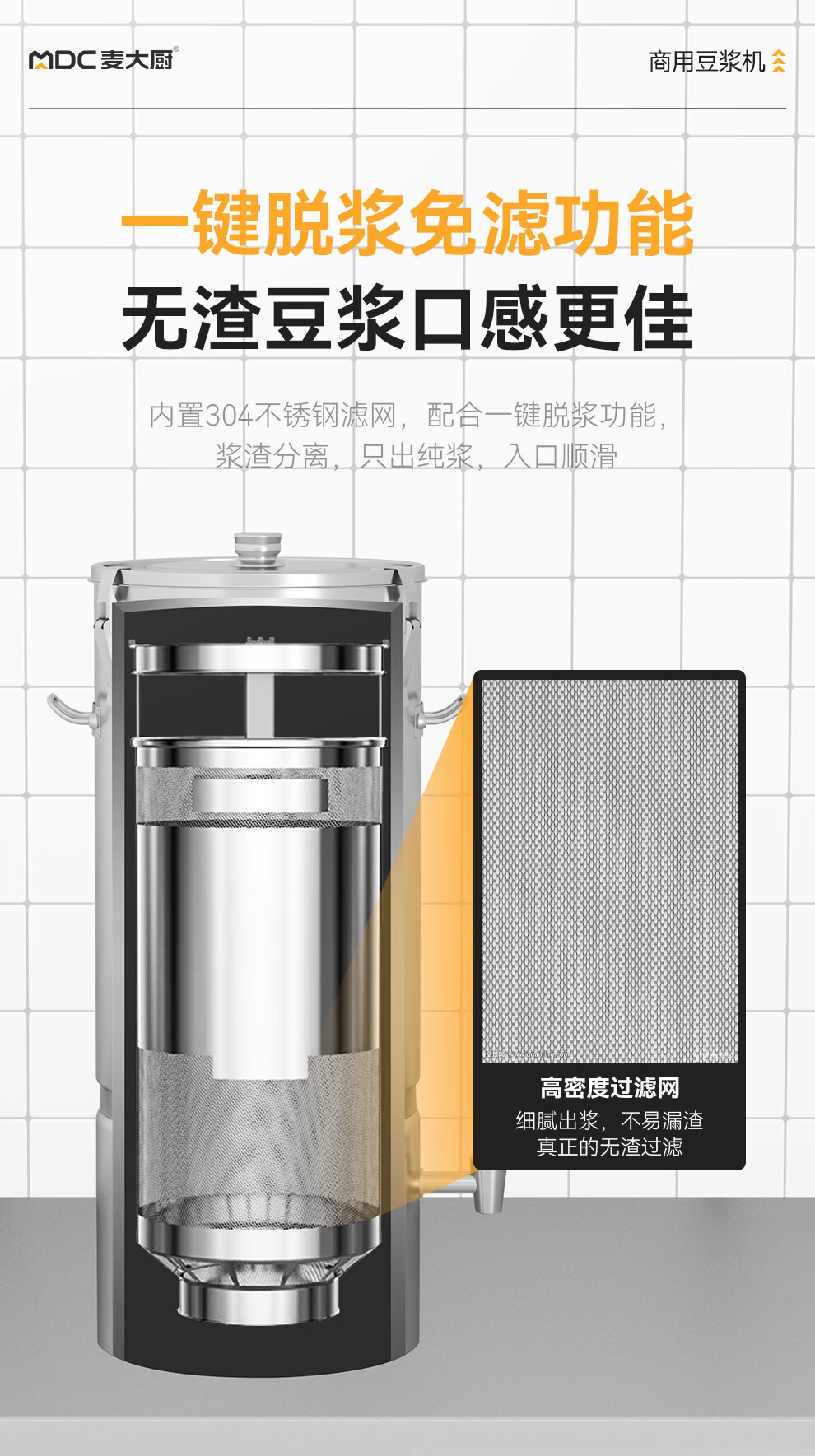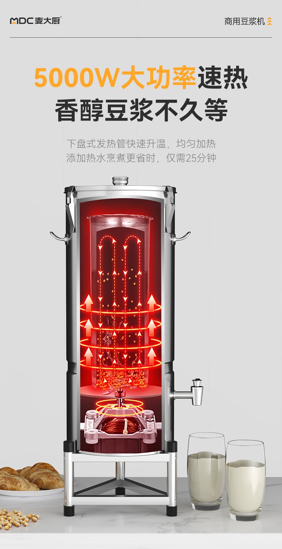 麥大廚商用豪華款單層豆漿機干濕兩用磨煮一體機30L