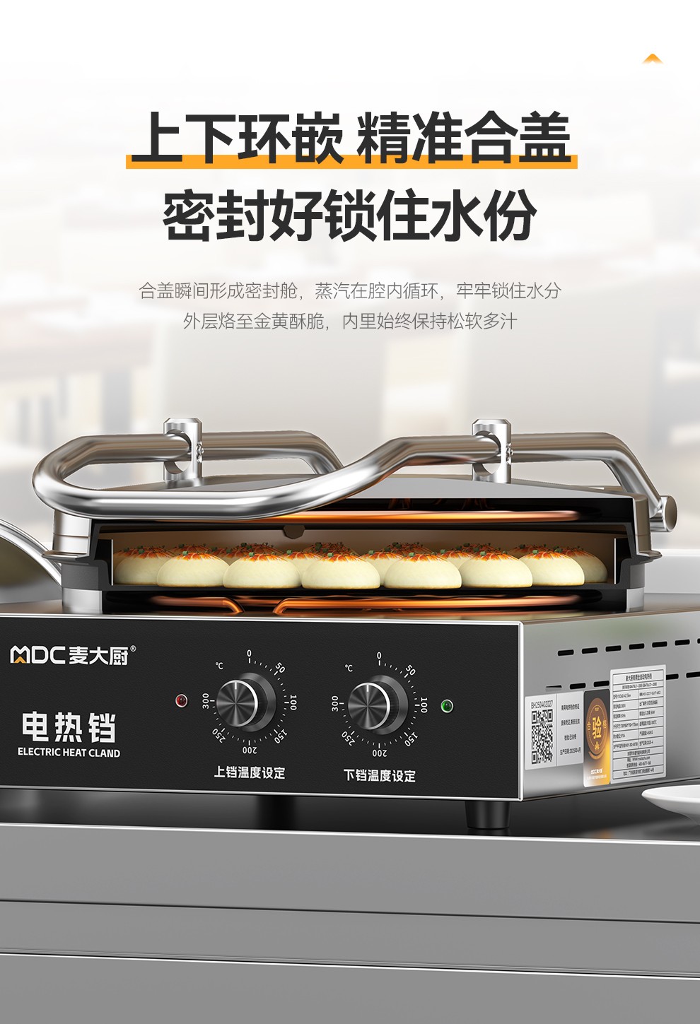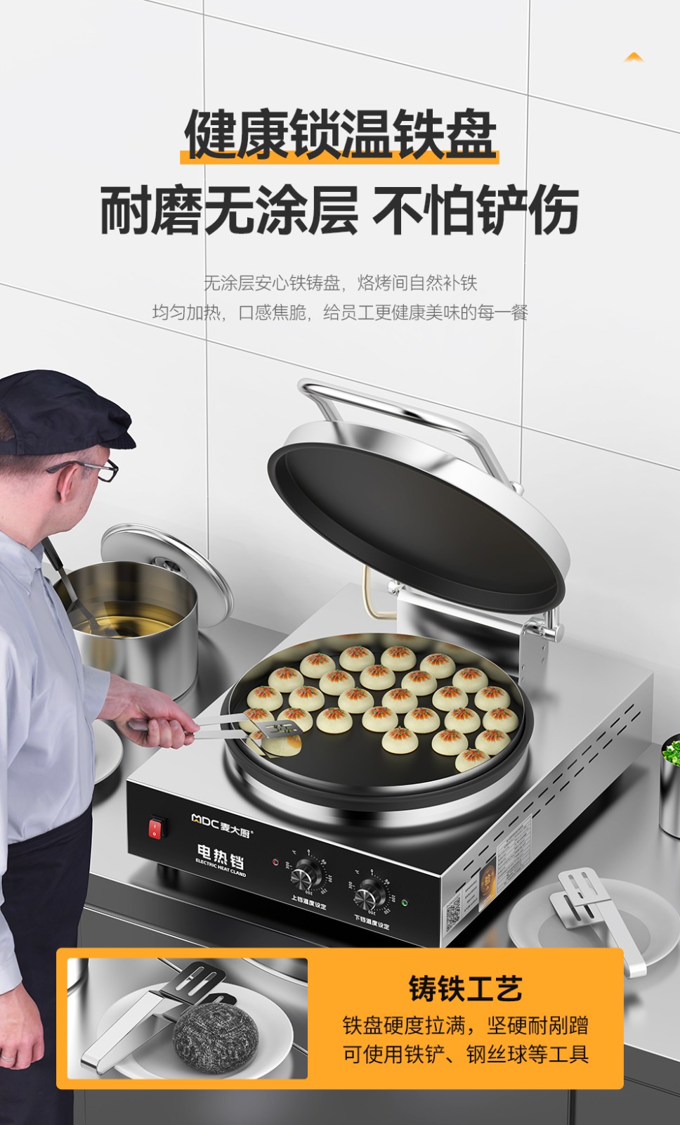 麥大廚臺式旋鈕款鐵鍋商用電餅鐺大型雙面加熱