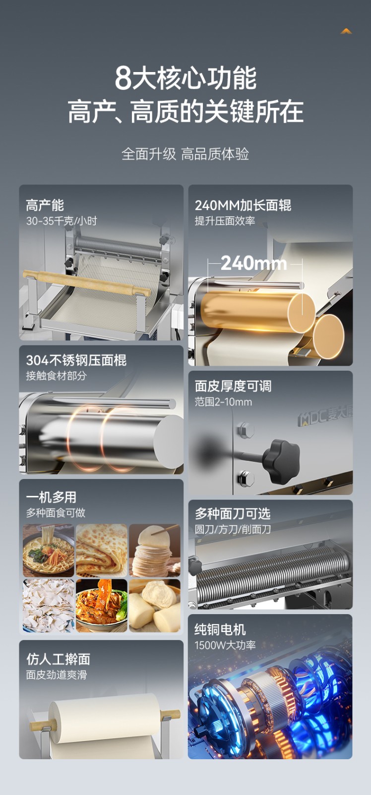 麥大廚連鎖款1.5kw商用壓面條機全自動軋面條機