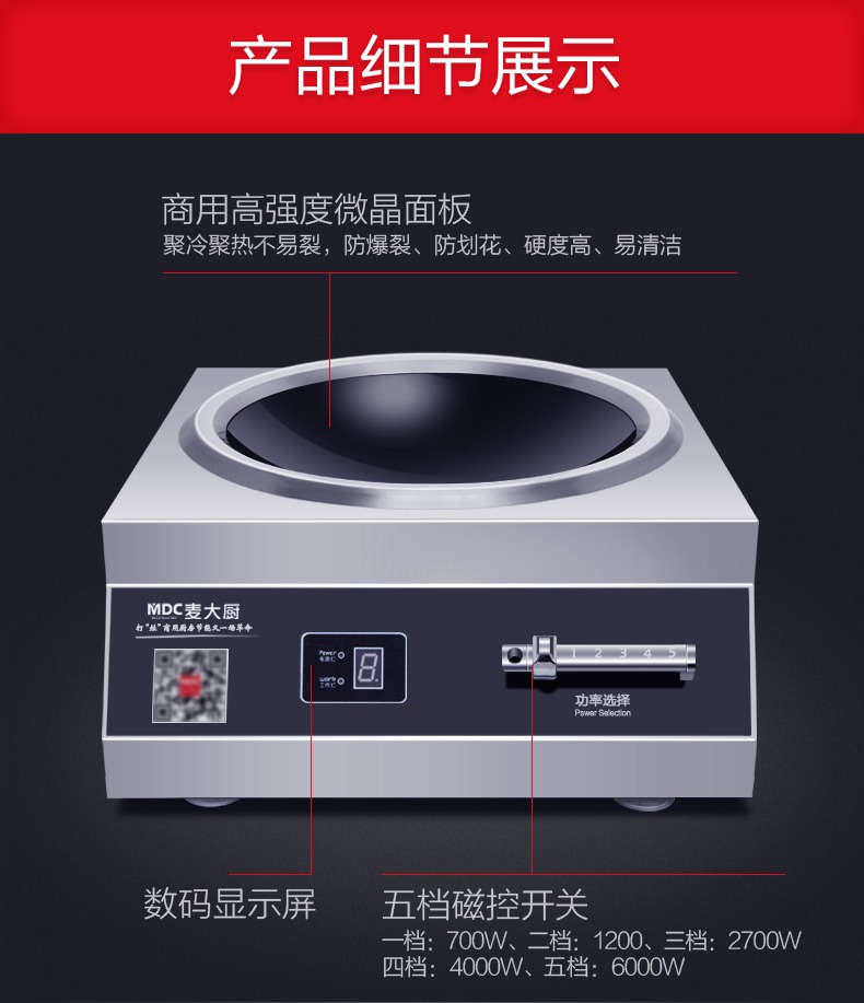 麥大廚380V商用臺(tái)式凹面電磁爐磁控款6kW