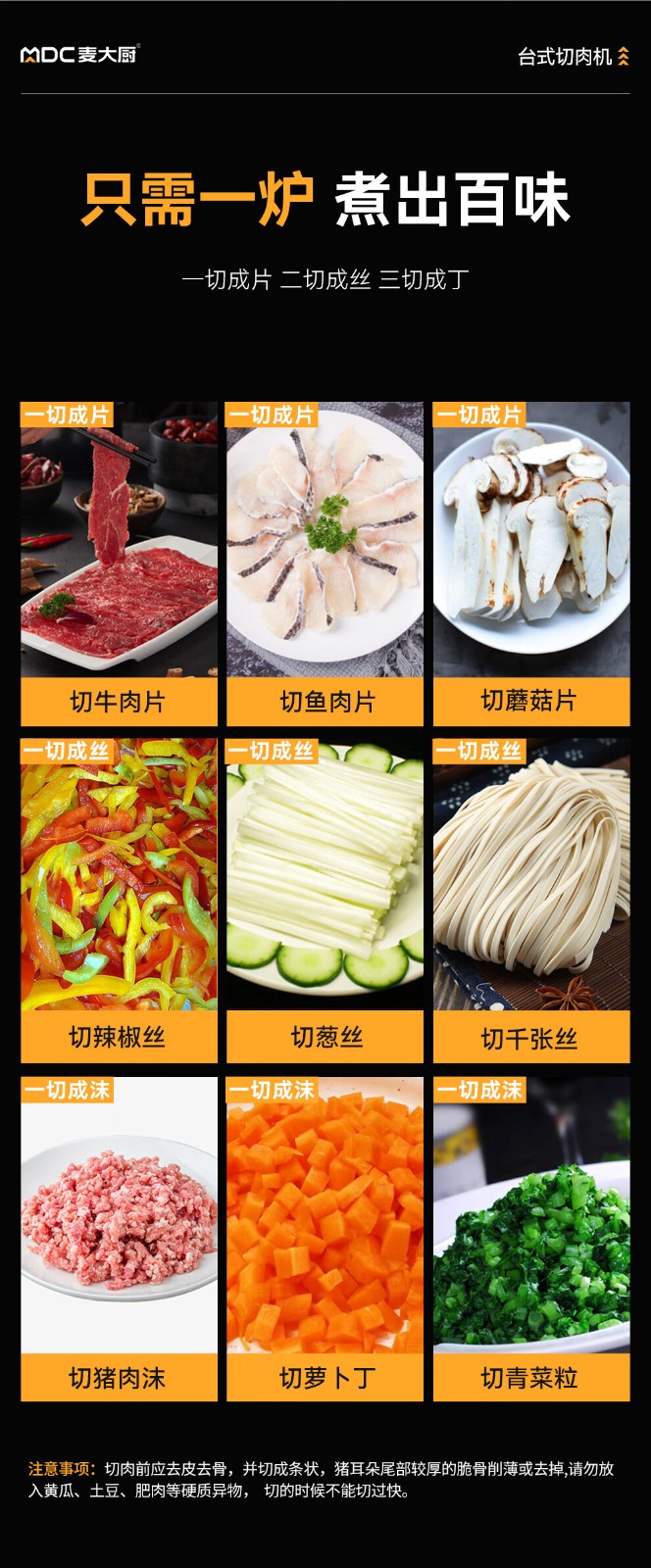 麥大廚850W可脫卸商用臺式切肉機肉食品加工機