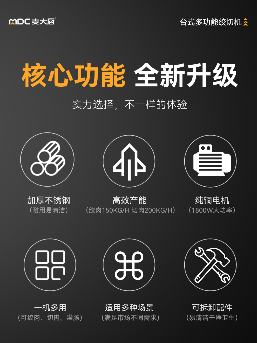 麥大廚1.8KW商用多功能可脫卸臺式絞切肉機灌腸機碎肉機