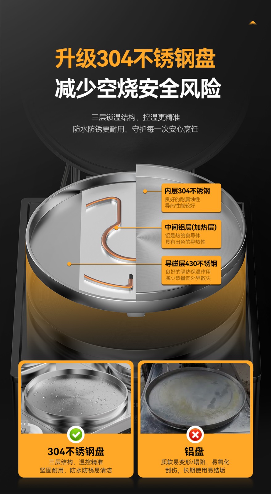 鍋體材質:304不銹鋼復底鍋