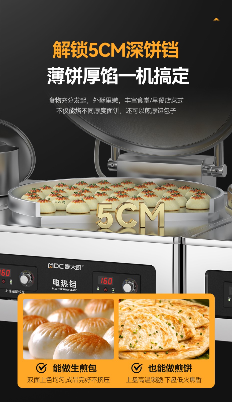 麥大廚220V食堂烙餅機數顯標準款商用電餅鐺(不銹鋼5cm)