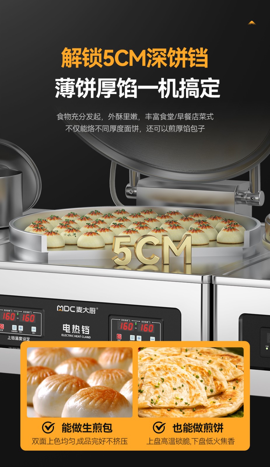 麥大廚大型食堂烙餅機數顯經濟款商用電餅鐺(鋁鍋G5)