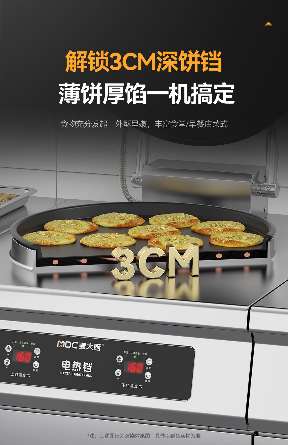 麥大廚220V數顯升級款商用電餅鐺大型食堂烙餅機鐵鍋3cm