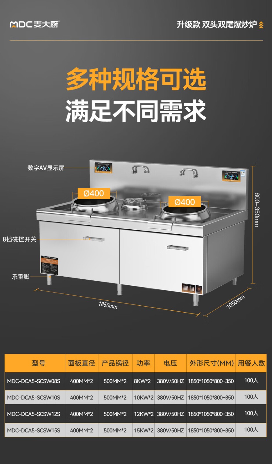 • 更多MDC商用雙頭雙尾小炒爐規(guī)格咨詢?cè)诰€客服