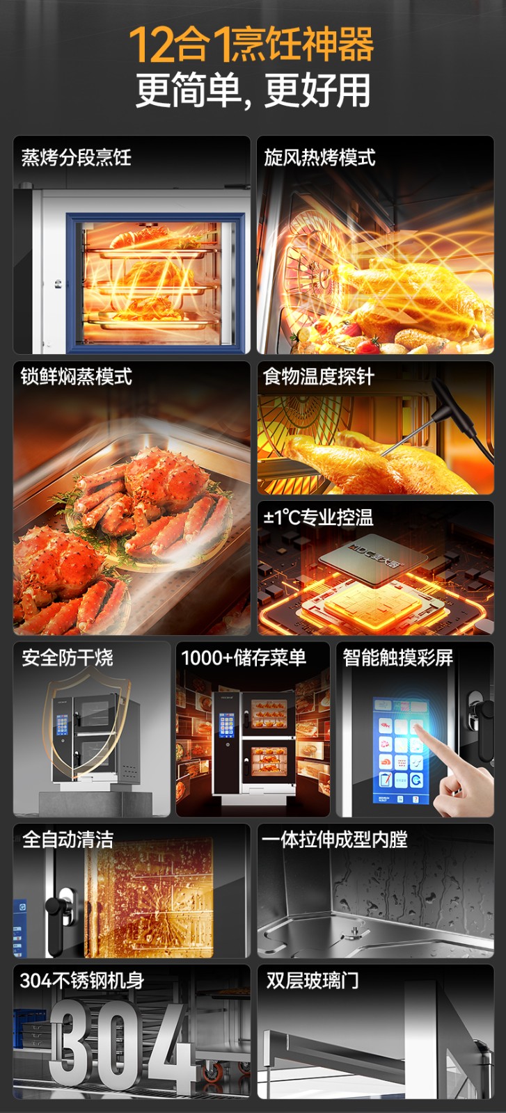麥大廚ZKA19系列2柜組合觸屏式萬(wàn)能蒸烤箱8.4kW
