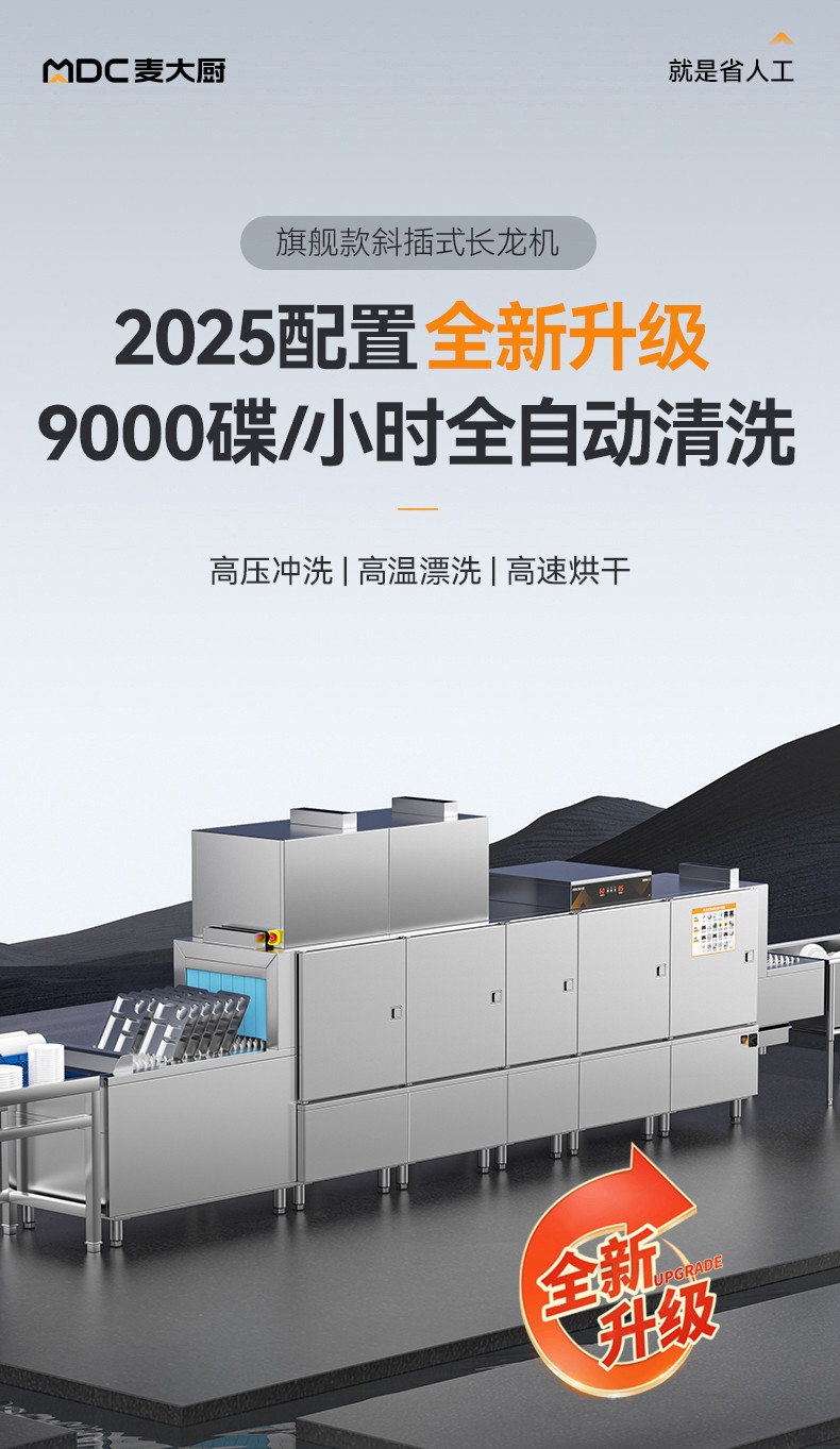 首頁 > 商廚產(chǎn)品 > 洗碗機(jī) > 斜插式洗碗機(jī) >麥大廚旗艦款5.85m斜插式雙缸雙噴淋雙烘干洗碗機(jī)