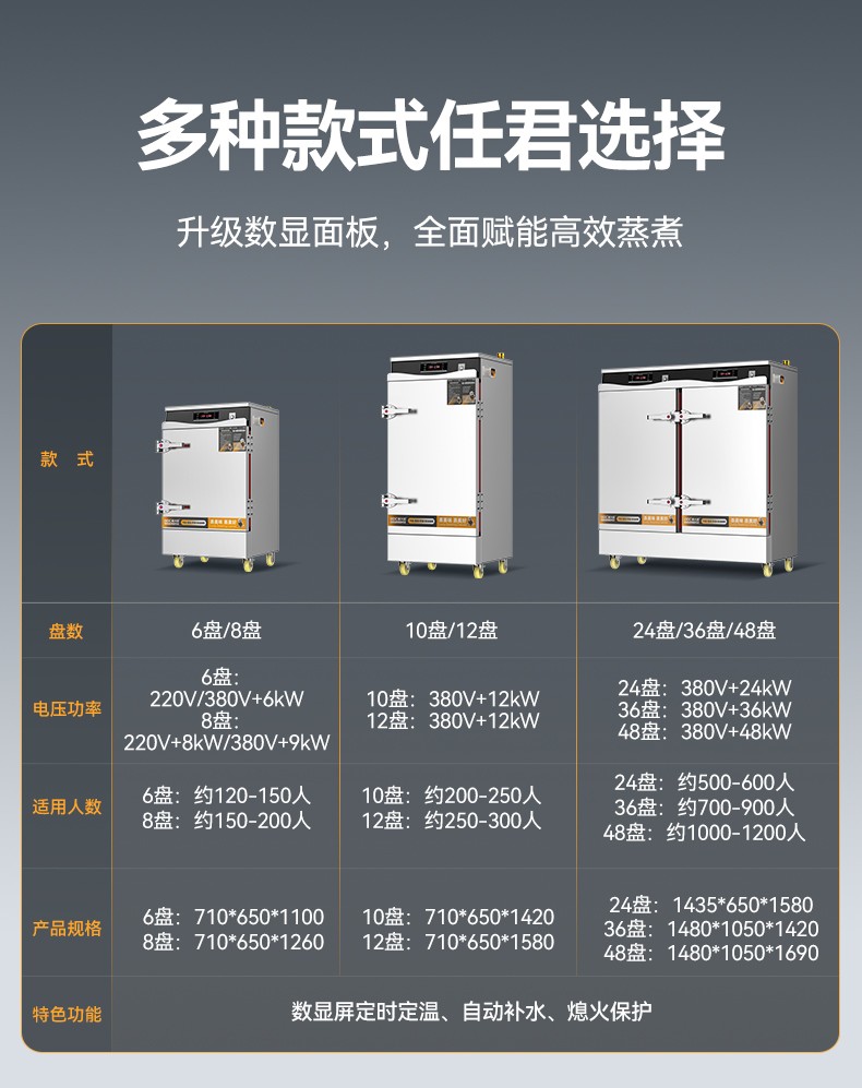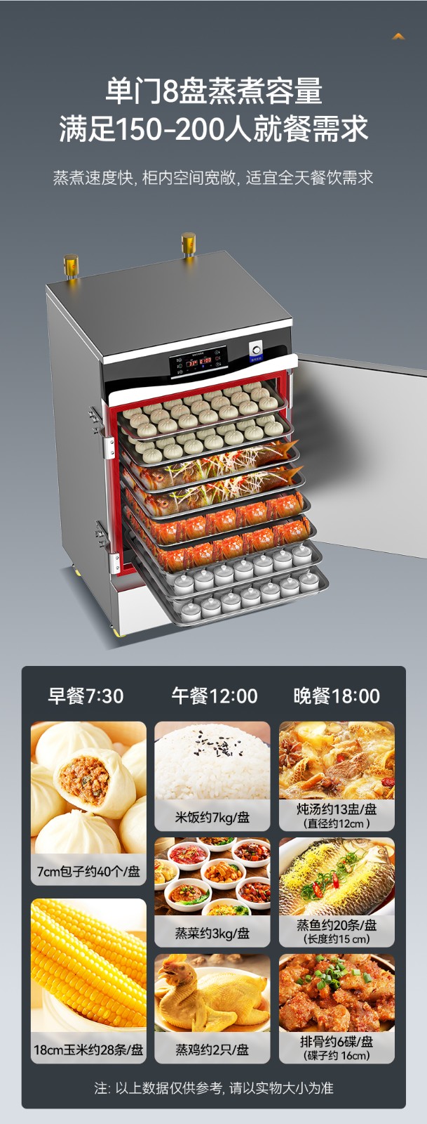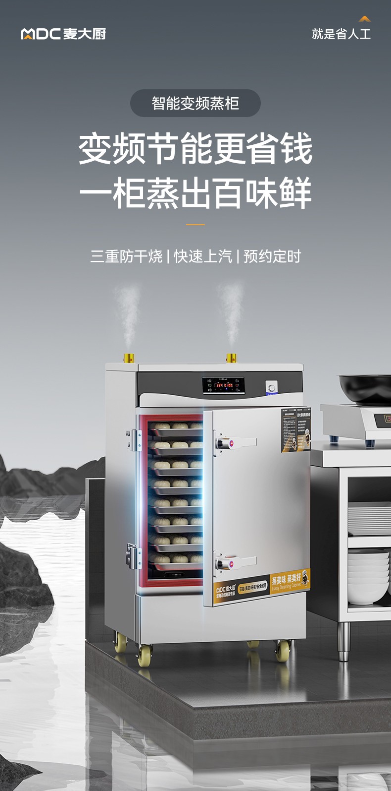 麥大廚商用蒸飯柜8盤變頻款智能電蒸箱電熱蒸飯車全自動蒸柜