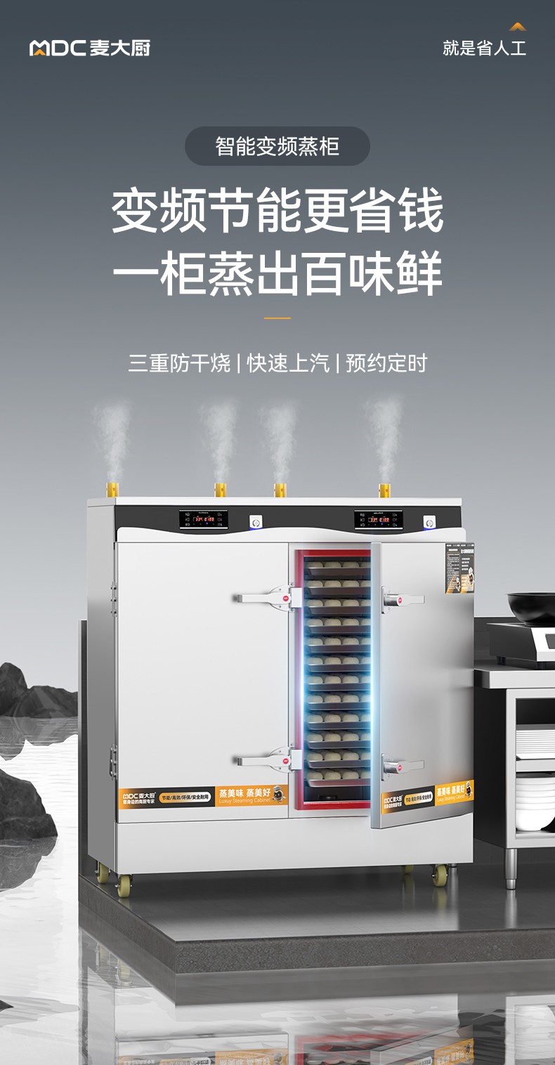 麥大廚商用蒸柜24盤變頻款智能電熱蒸箱蒸飯車全自動蒸飯柜