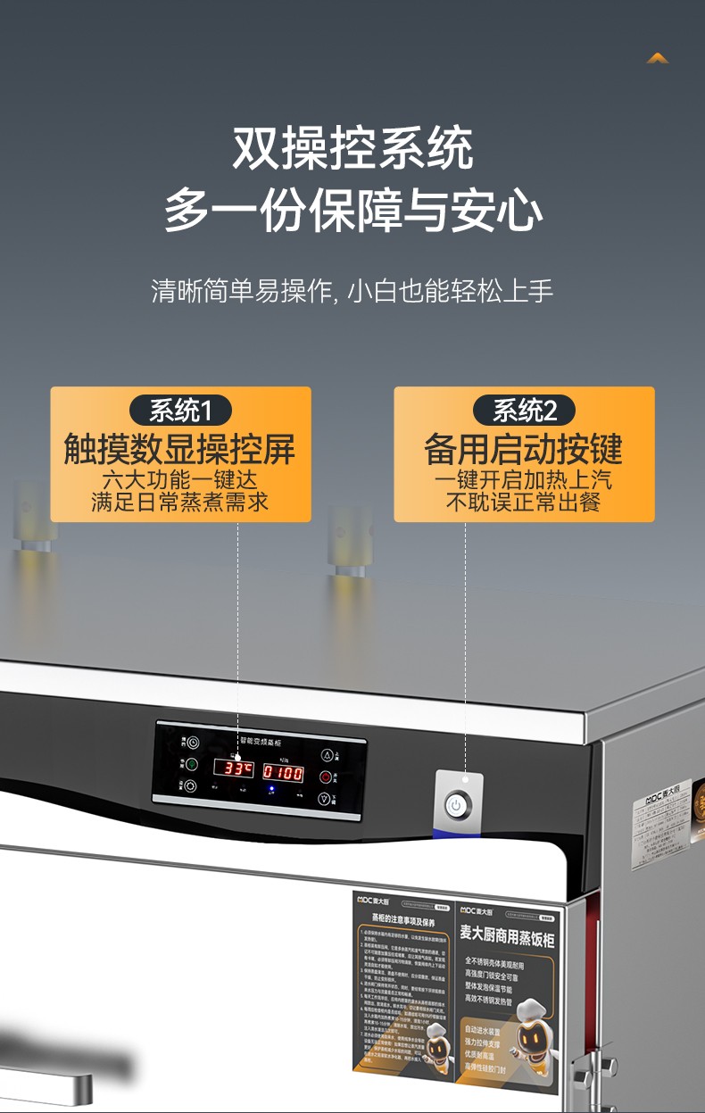 結構形式:雙門雙控 - 更多MDC商用蒸飯柜規格咨詢在線客服