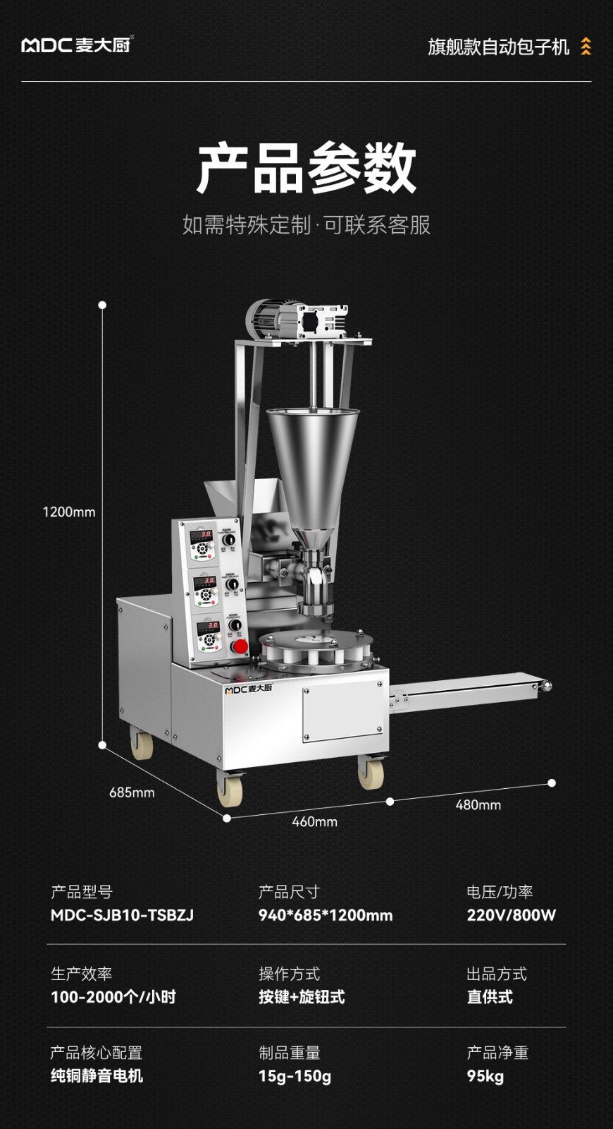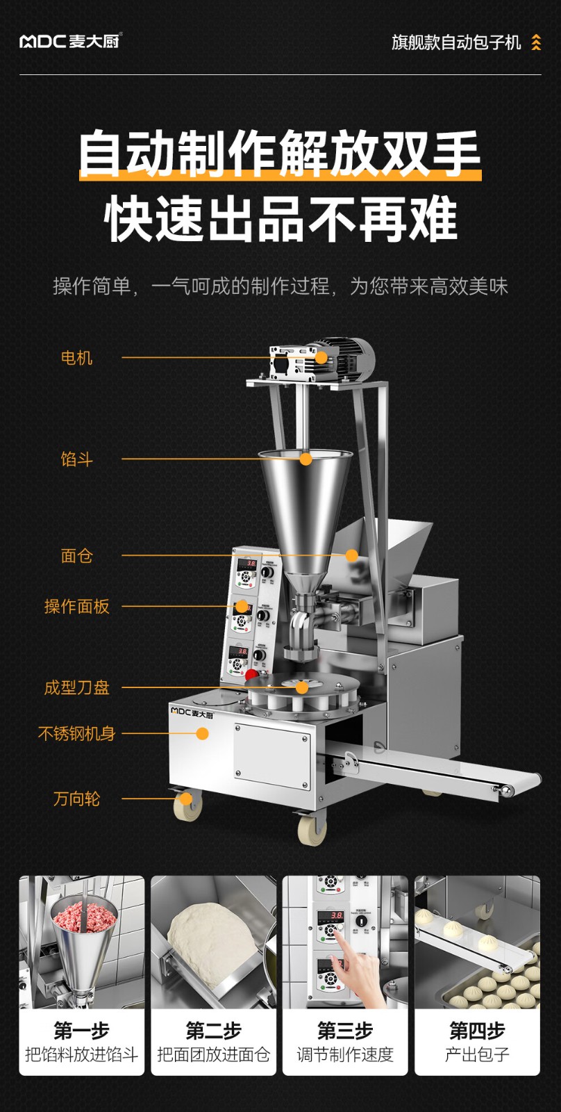 麥大廚包子機(jī)商用學(xué)校食堂仿手工全自動成型臺式單斗包子機(jī)0.8KW