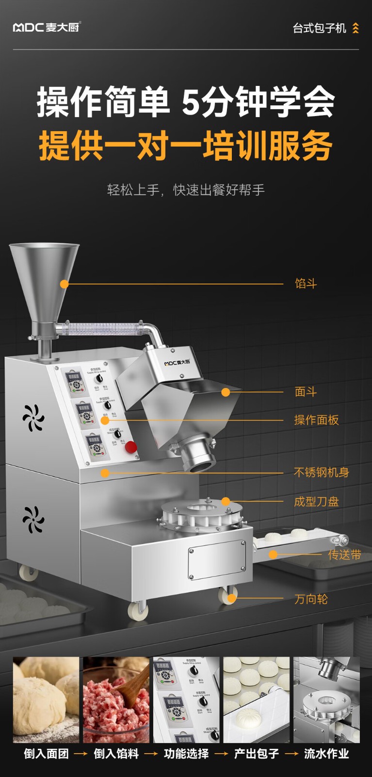 麥大廚包子機(jī)商用學(xué)校單位食堂小型自動成型臺式單斗包子機(jī)0.8KW