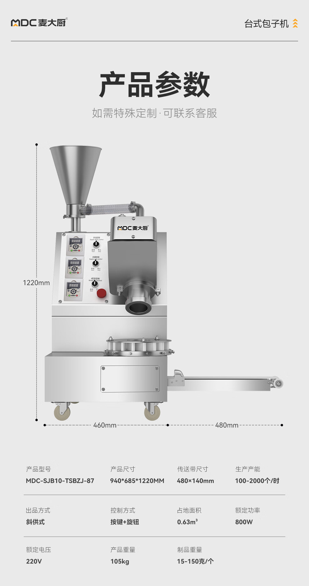 傳送帶尺寸:480*140mm - 更多MDC商用包子機(jī)規(guī)格咨詢在線客服