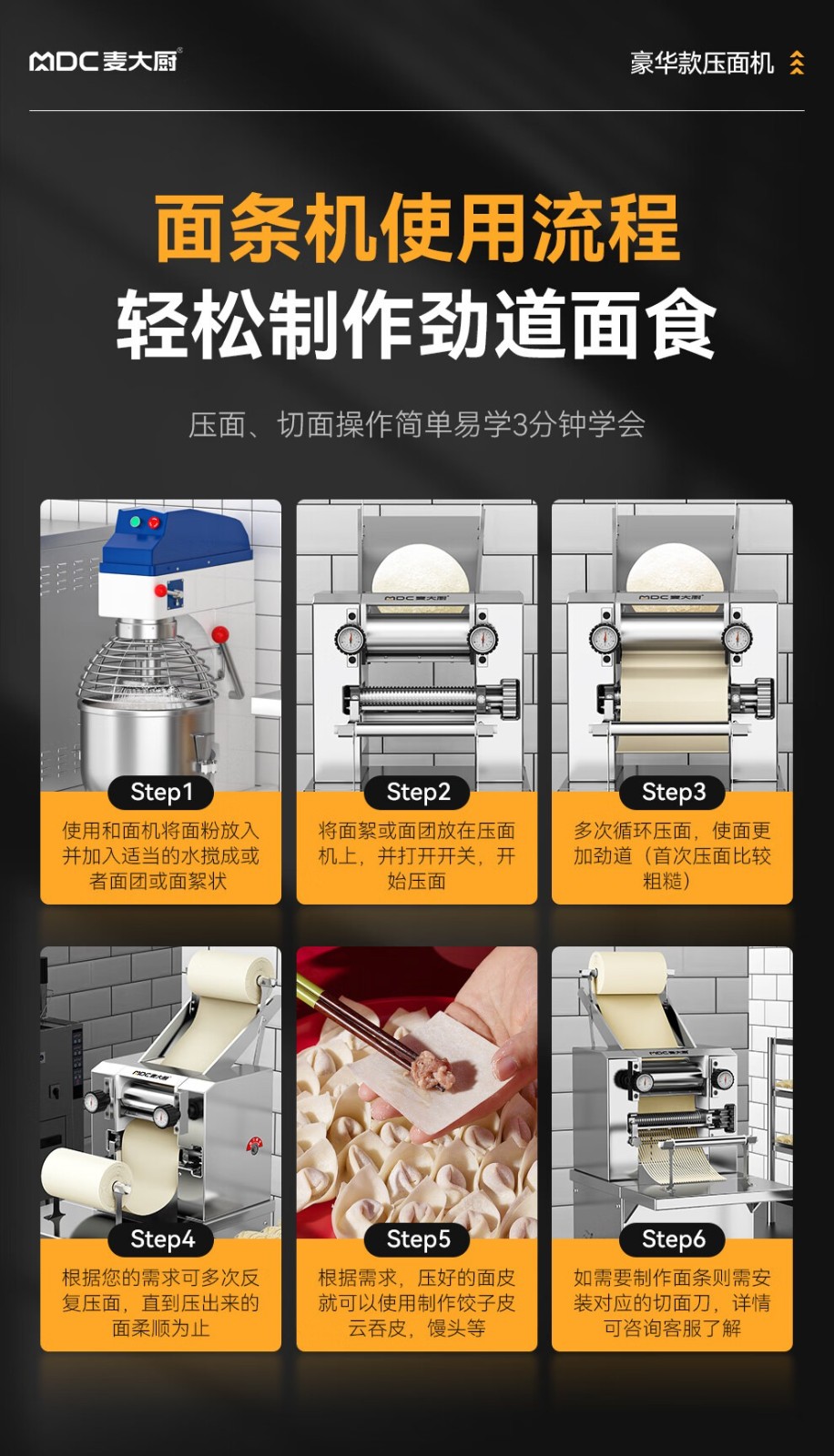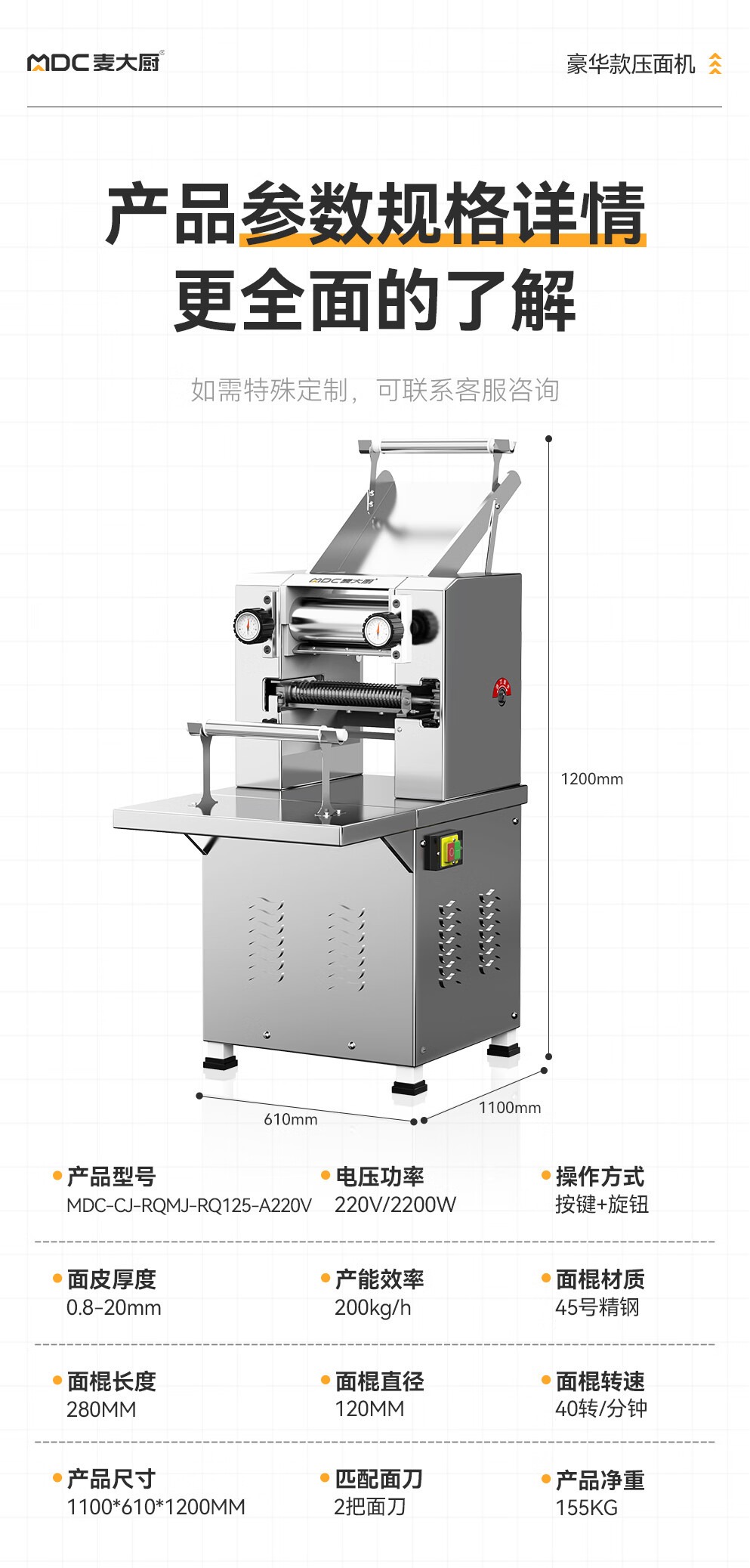 壓面厚度范圍:0.8-20mm - 更多MDC商用壓面機規格咨詢在線客服